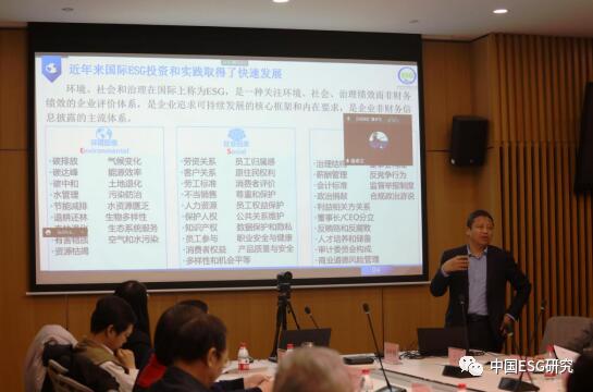 會(huì)上,首都經(jīng)濟(jì)貿(mào)易大學(xué)中國(guó)ESG研究院執(zhí)行院長(zhǎng)、工商管理學(xué)院院長(zhǎng)柳學(xué)信介紹了中國(guó)ESG研究院的發(fā)展歷程。他表示,近年來(lái)國(guó)際ESG投資和實(shí)踐取得了快速發(fā)展,我國(guó)應(yīng)大力發(fā)展ESG理念,積極參與全球經(jīng)濟(jì)治理,推動(dòng)經(jīng)濟(jì)社會(huì)發(fā)展全面綠色轉(zhuǎn)型。在此背景下,首都經(jīng)濟(jì)貿(mào)易大學(xué)中國(guó)ESG研究院的成立具有重要意義。研究院致力于成為國(guó)內(nèi)ESG領(lǐng)域有影響力的高端研究型智庫(kù),建設(shè)服務(wù)于“政府決策咨詢、國(guó)家標(biāo)準(zhǔn)制定、科研學(xué)術(shù)創(chuàng)新、人才教育培養(yǎng)”的政產(chǎn)研學(xué)平臺(tái)。自成立以來(lái),研究院與政府機(jī)關(guān)和同行機(jī)構(gòu)建立了緊密的合作,開(kāi)展了大量卓有成效的工作:成功召開(kāi)首屆中國(guó)ESG論壇,推出ESG理論研究系列專著、構(gòu)建中國(guó)企業(yè)ESG披露標(biāo)準(zhǔn)體系、建設(shè)中國(guó)ESG評(píng)價(jià)數(shù)據(jù)庫(kù)、率先招收ESG方向研究生、打造ESG交流平臺(tái)等,已成為國(guó)內(nèi)ESG理論的研究重地。柳學(xué)信還指出,當(dāng)前在我國(guó)啟動(dòng)ESG標(biāo)準(zhǔn)化建設(shè)恰逢其時(shí),在借鑒國(guó)際成熟ESG披露框架的基礎(chǔ)上須結(jié)合中國(guó)具體國(guó)情研究制定本土化的ESG標(biāo)準(zhǔn)。