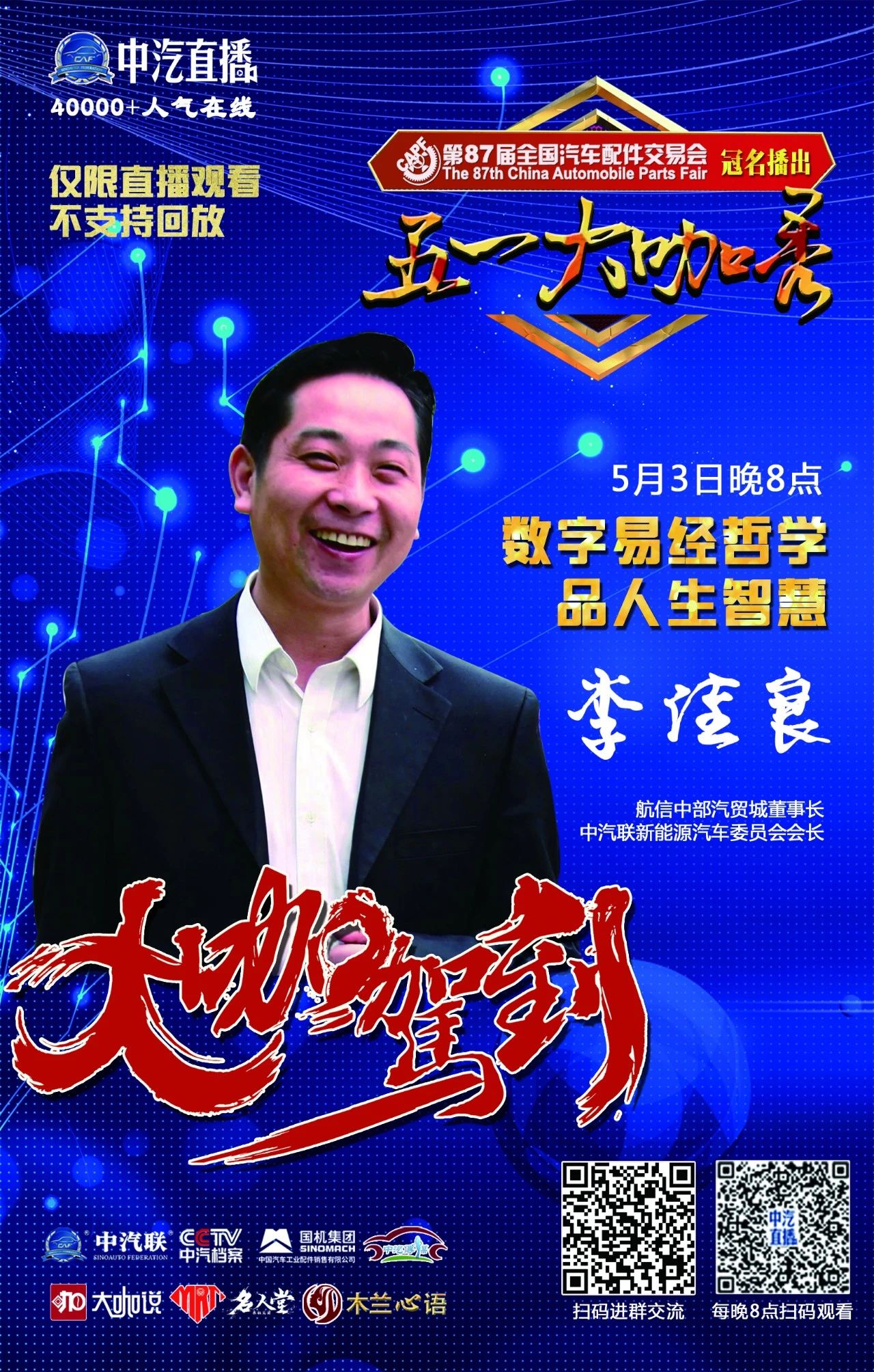 汽車行業(yè)有這么一群人,他們簡(jiǎn)單樸素,充滿智慧,不遺余力,尋找著各式各樣的機(jī)會(huì),為國(guó)家貢獻(xiàn)可觀的稅收,創(chuàng)造無(wú)數(shù)的就業(yè)崗位,承擔(dān)著社會(huì)責(zé)任,但是他們也是最容易被人們所忽略的群體,很少受到公眾和媒體真正的關(guān)注,傾聽(tīng)他們背后所承受的辛酸、壓力以及難以忍受的焦慮。為此,中汽聯(lián)、CCTV《中汽檔案》及中汽配成立“領(lǐng)袖智富匯”,開(kāi)通中汽直播《大咖說(shuō)》直播欄目——構(gòu)建一個(gè)充滿正能量、充滿夢(mèng)想,極具感召力的創(chuàng)富者聚合平臺(tái),一起智慧共享、資源共享、資金共享、學(xué)習(xí)交流、共同成長(zhǎng)!