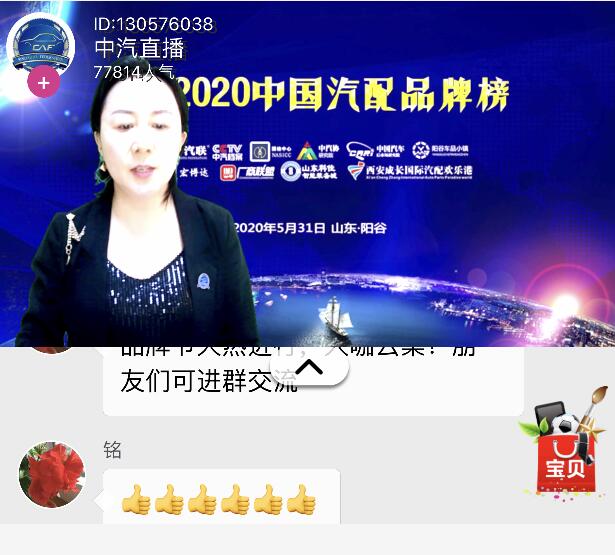 2020云上宏博達(dá)杯中國汽配品牌節(jié)5月10日啟動(dòng)以來,得到了中汽、瑞立、華勝等上百家品牌企業(yè)創(chuàng)始人的積極參與,同時(shí)也舉辦了“中威品牌日、“廣東品牌日”、“卡邁智品牌日”、“優(yōu)一步品牌日”、“宏博達(dá)品牌日”、“陽谷車品小鎮(zhèn)日”等企業(yè)品牌日直播活動(dòng),全國有近70000名企業(yè)家網(wǎng)絡(luò)參會互動(dòng),感受精品魅力、共話美好未來,講好汽配品牌故事,助力企業(yè)走向世界,實(shí)現(xiàn)汽車行業(yè)高質(zhì)量發(fā)展。