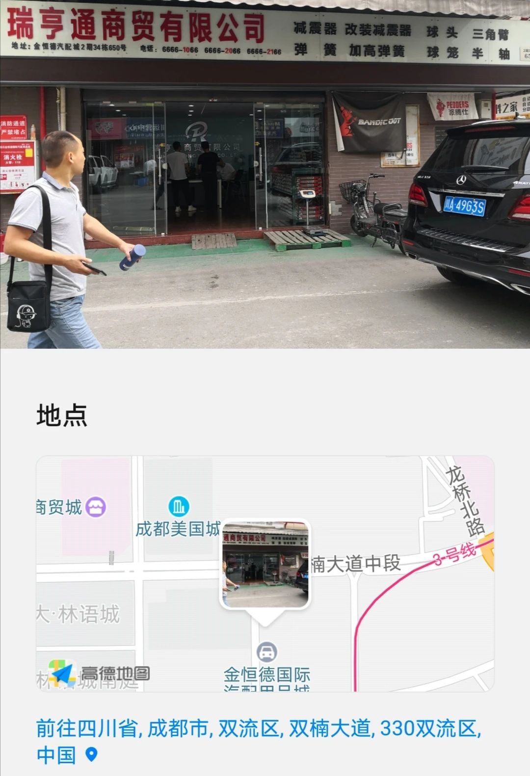 7日上午,在唐云光秘書長的陪同下,陳光生副總經(jīng)理、何鋒杰副總經(jīng)理一同前往了:雙流區(qū)金恒德汽配市場、成都三九汽配市場、成都倉儲汽配物流中心走訪考察對接成都汽配市場經(jīng)銷商戶,在唐云光秘書長的介紹下,陳光生副總,何鋒杰副總先后與成都市星航汽車配件有限公司總經(jīng)理涂星嘵,成都袋鼠減震器公司總經(jīng)理章家旺,成都閩星寶商貿(mào)公司董事長張曉明,成都豐田全車配件公司總經(jīng)理于代軍,成都耐鐵日韓系公司總經(jīng)理楊平,成都蓉輝汽配公司總經(jīng)理李文虎等認識并建立了友好關(guān)系。