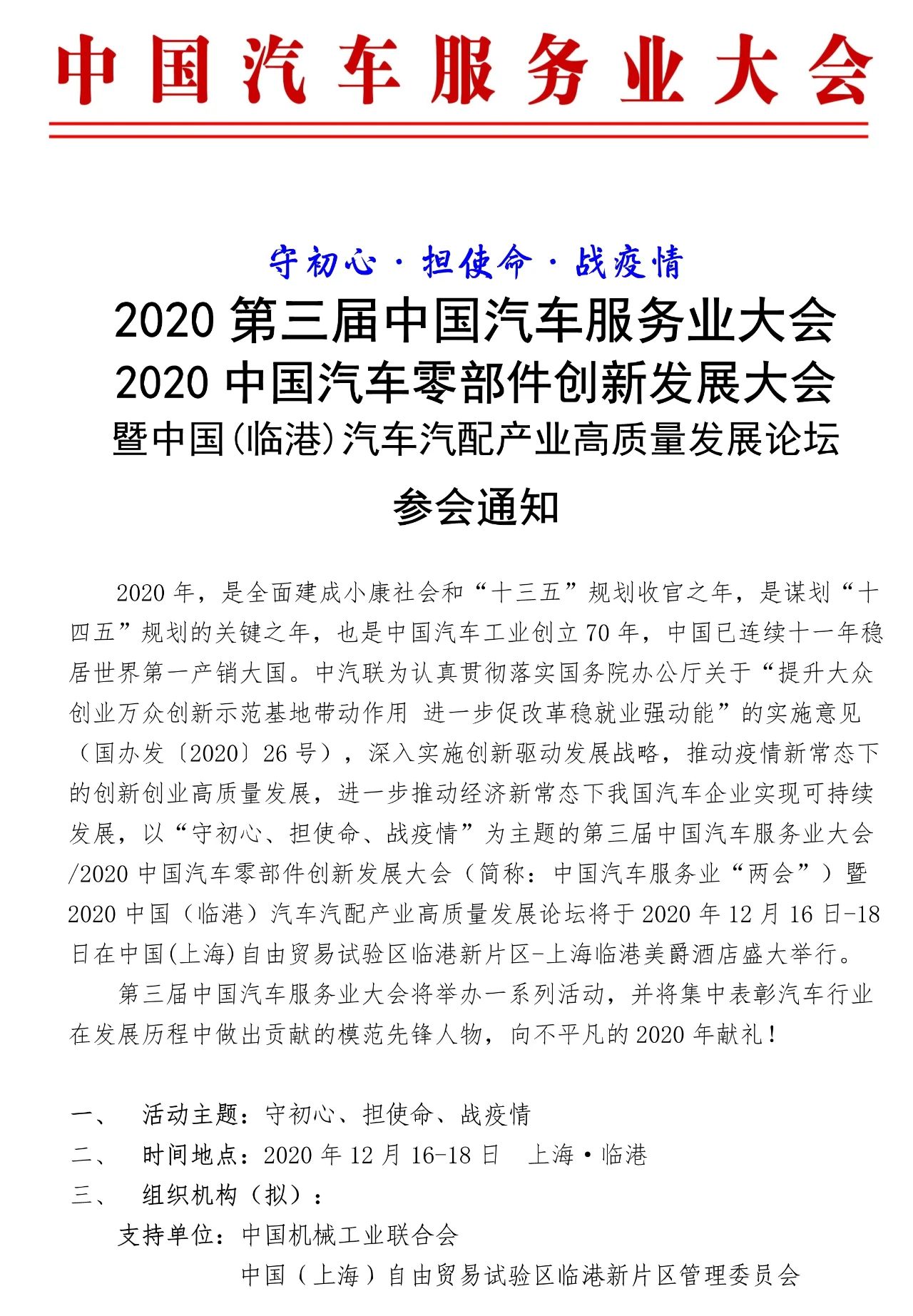 2020中國汽車服務(wù)業(yè)“兩會”邀請函
