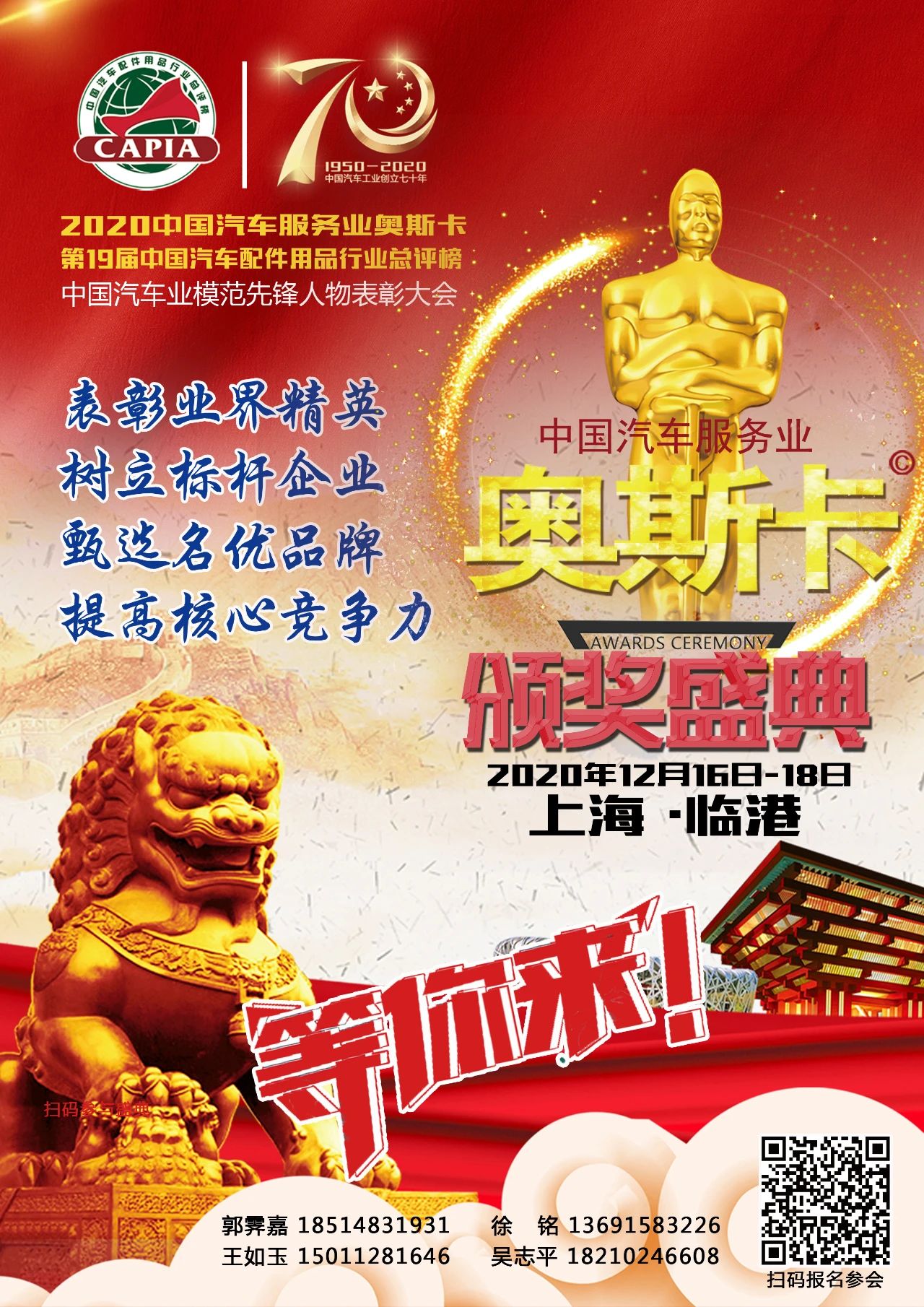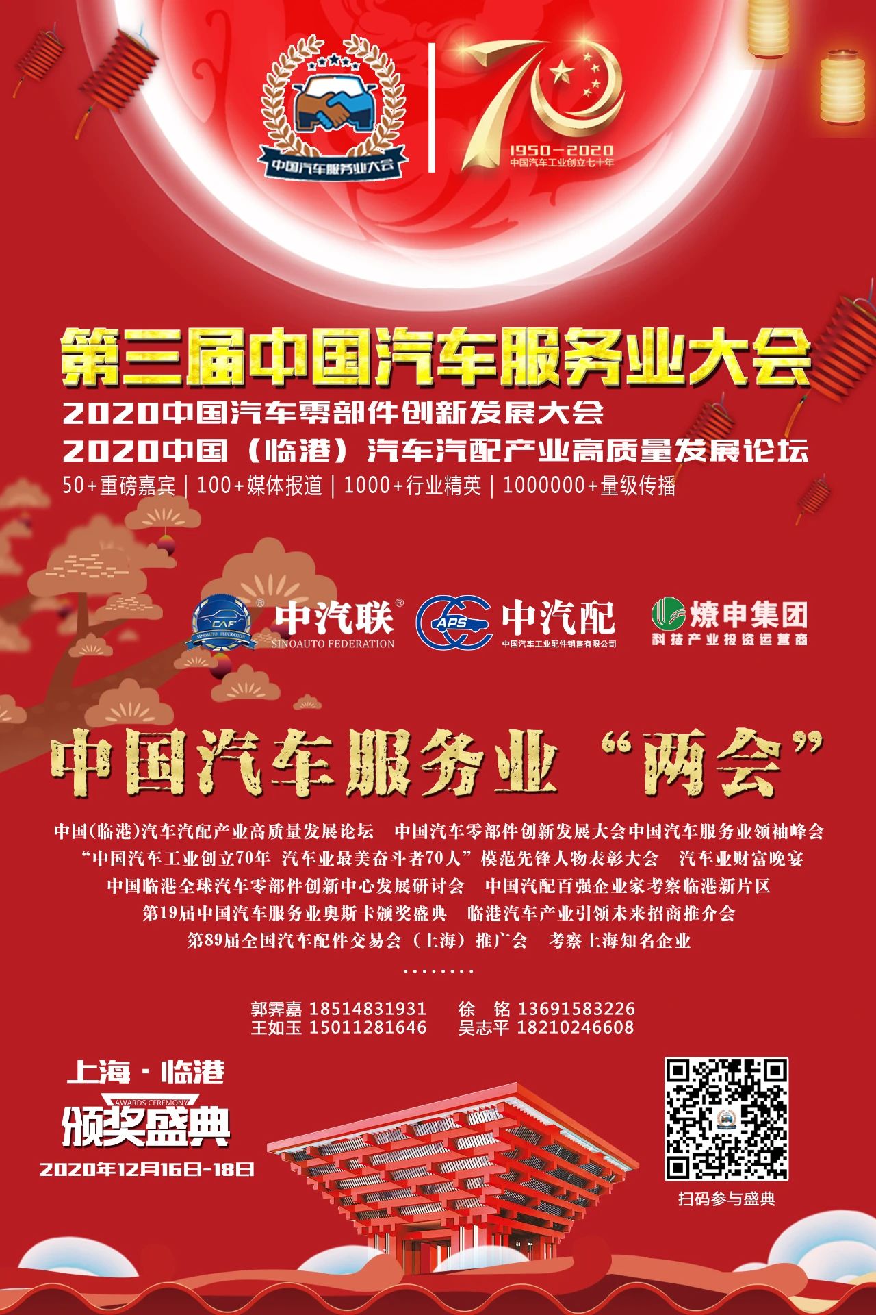 2020年,是全面建成小康社會和“十三五”規(guī)劃收官之年,是謀劃“十四五”規(guī)劃的關(guān)鍵之年,也是中國汽車工業(yè)創(chuàng)立70年,中國已連續(xù)十一穩(wěn)居世界第一產(chǎn)銷大國。中汽聯(lián)為認(rèn)真貫徹落實(shí)國務(wù)院辦公廳關(guān)于“提升大眾創(chuàng)業(yè)萬眾創(chuàng)新示范基地帶動作用 進(jìn)一步促改革穩(wěn)就業(yè)強(qiáng)動能”的實(shí)施意見(國辦發(fā)〔2020〕26號),深入實(shí)施創(chuàng)新驅(qū)動發(fā)展戰(zhàn)略,推動疫情新常態(tài)下的創(chuàng)新創(chuàng)業(yè)高質(zhì)量發(fā)展,進(jìn)一步推動經(jīng)濟(jì)新常態(tài)下我國汽車企業(yè)實(shí)現(xiàn)可持續(xù)發(fā)展,以“守初心、擔(dān)使命、戰(zhàn)疫情”為主題的第三屆中國汽車服務(wù)業(yè)大會/2020中國汽車零部件創(chuàng)新發(fā)展大會(簡稱:中國汽車服務(wù)業(yè)“兩會”)暨2020中國(臨港)汽車汽配產(chǎn)業(yè)高質(zhì)量發(fā)展論壇將于2020年12月16日-18日在中國(上海)自由貿(mào)易試驗(yàn)區(qū)臨港新片區(qū)-上海臨港美爵酒店盛大舉行。
