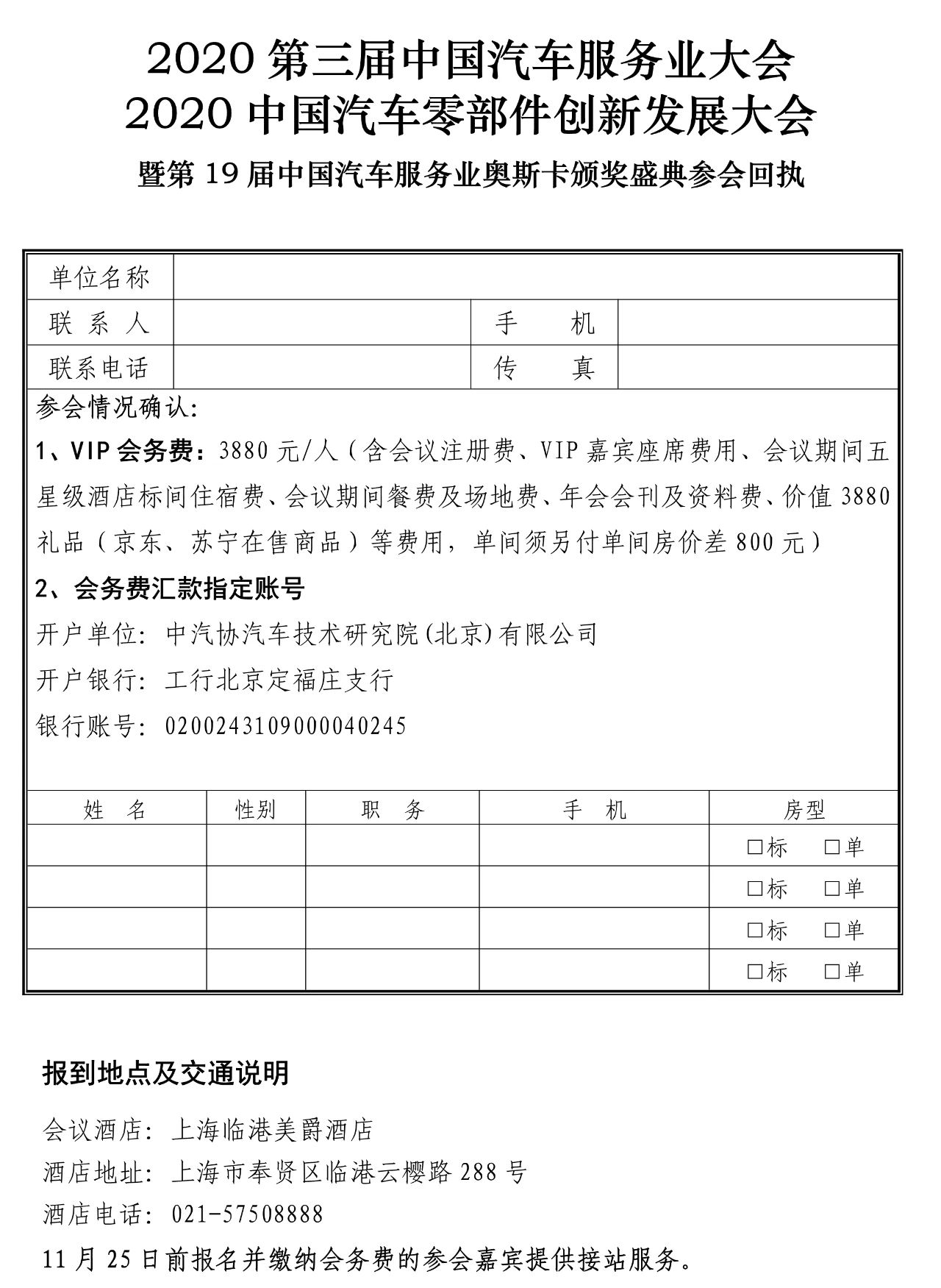 中汽聯(lián)副會長及以上級別會務(wù)費(fèi):2880元/人