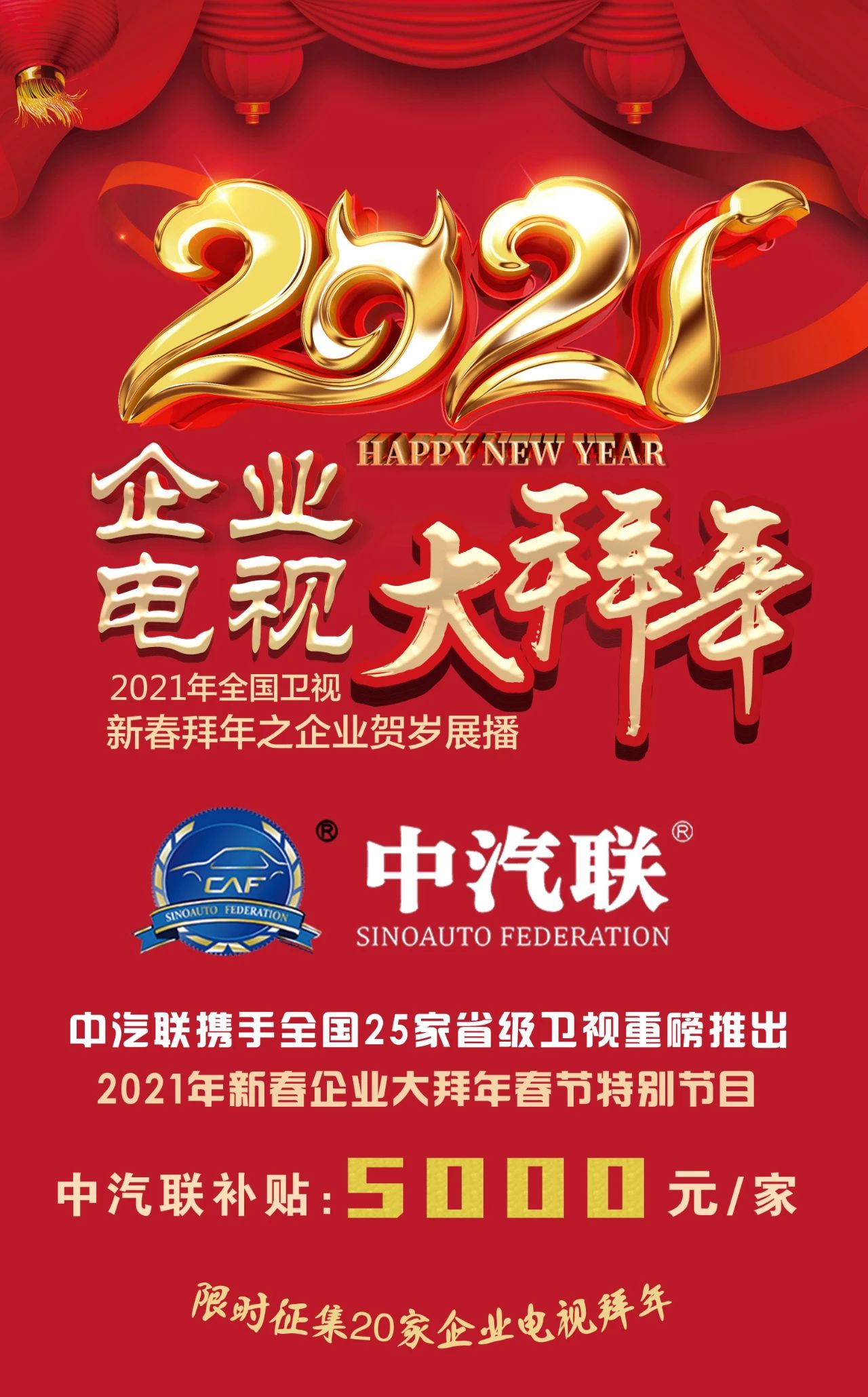 衛(wèi)視拜年 | 中汽聯(lián)攜25家衛(wèi)視,高額補(bǔ)貼,邀您給全國人民拜年!