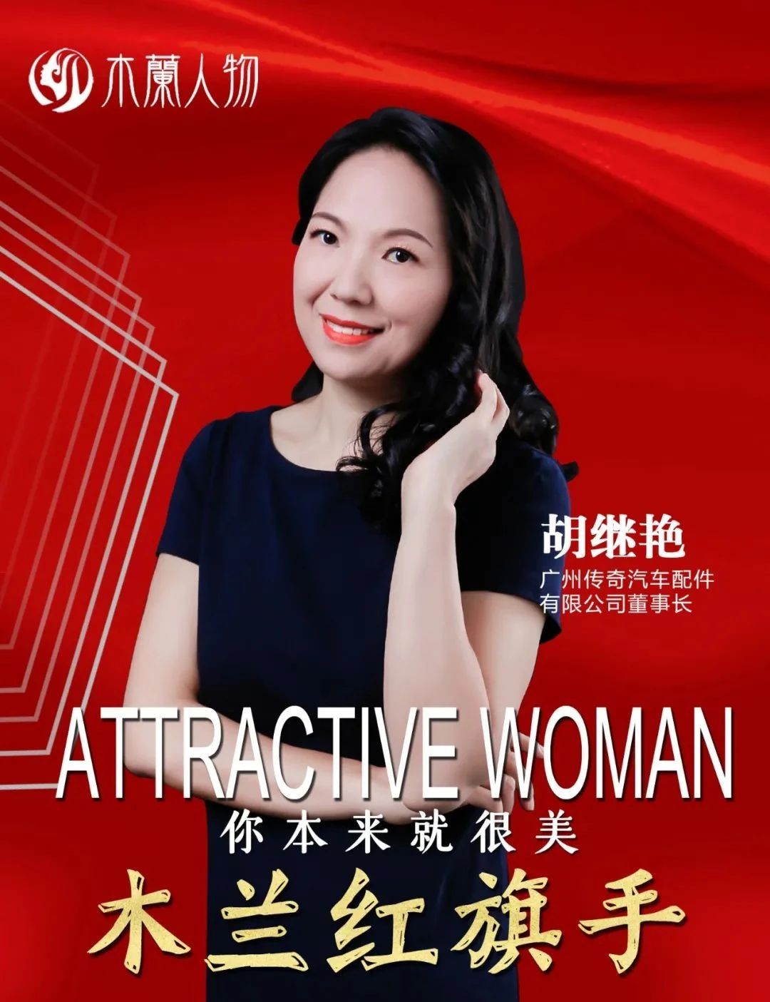 胡繼艷 現(xiàn)任廣州傳奇汽車配件有限公司董事長、中汽聯(lián)副會長、木蘭會聯(lián)席主席。她為社會提供了200多人的就業(yè)崗位,她多次被評為“全國優(yōu)秀企業(yè)家”及“中國汽車用品行業(yè)領(lǐng)軍人物”,她于2018年榮膺中國汽車業(yè)改革先鋒人物,2019年榮膺中國汽車服務(wù)業(yè)功勛人物,多次被評為全國木蘭領(lǐng)袖等榮譽(yù)稱號。