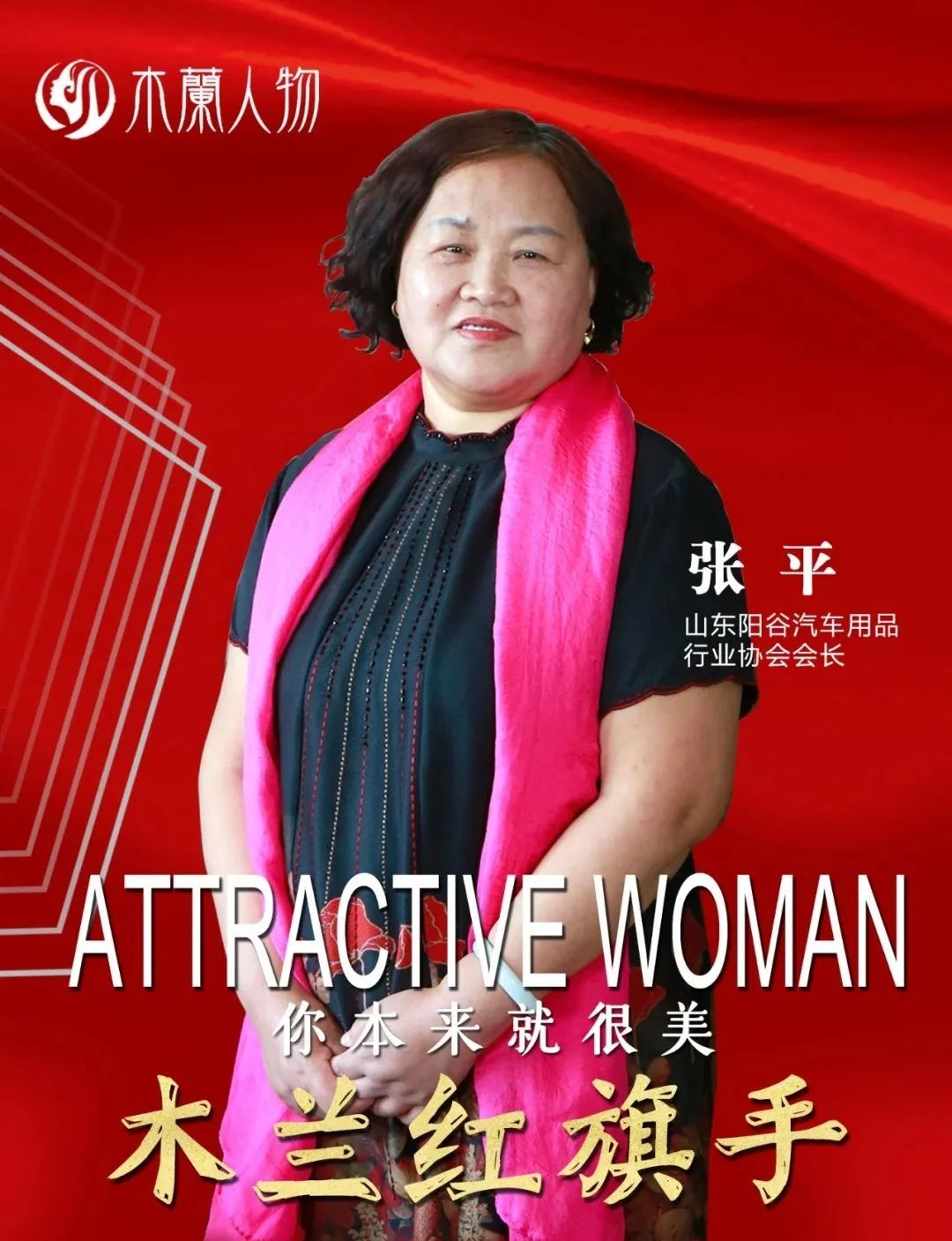 張平 陽谷車品小鎮(zhèn)發(fā)展有限公司董事局副主席兼監(jiān)事長、陽谷汽車用品行業(yè)協(xié)會會長、陽谷女企業(yè)家協(xié)會會長、中汽聯(lián)副會長。