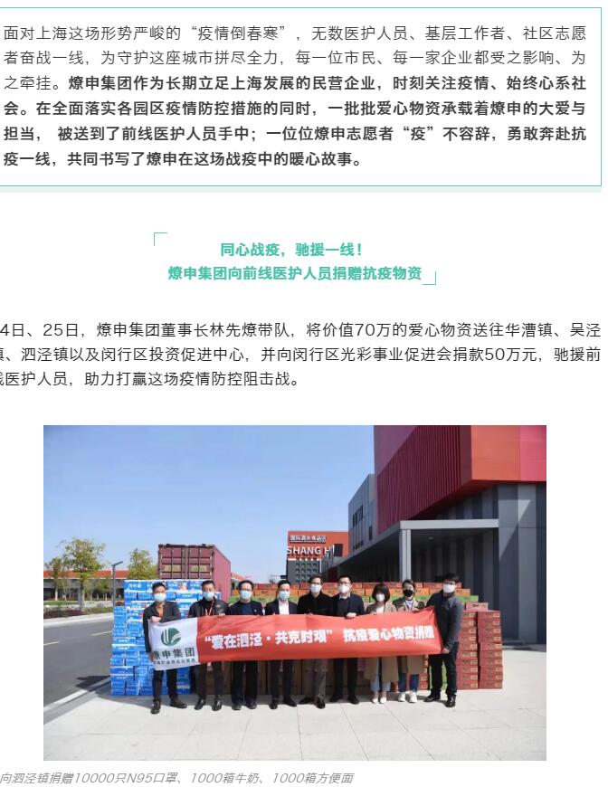上海燎申集團(tuán)愛心捐贈(zèng)馳援一線,眾志成城抗擊疫情!