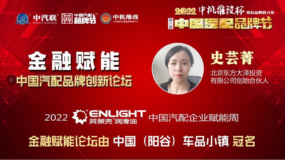 2022中國(guó)汽配品牌賦能周由山西英萊殼科技股份有限公司獨(dú)家冠名,在線(xiàn)上舉辦的賦能周第一場(chǎng)活動(dòng)“金融賦能·2022中國(guó)汽配品牌創(chuàng)新論壇”由中國(guó)(陽(yáng)谷)車(chē)品小鎮(zhèn)冠名特約播出,這是2022中機(jī)維改杯第三屆中國(guó)汽配品牌節(jié)系列活動(dòng)的第四項(xiàng)活動(dòng)。