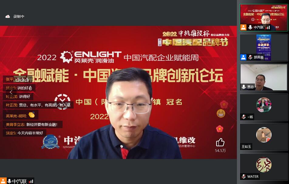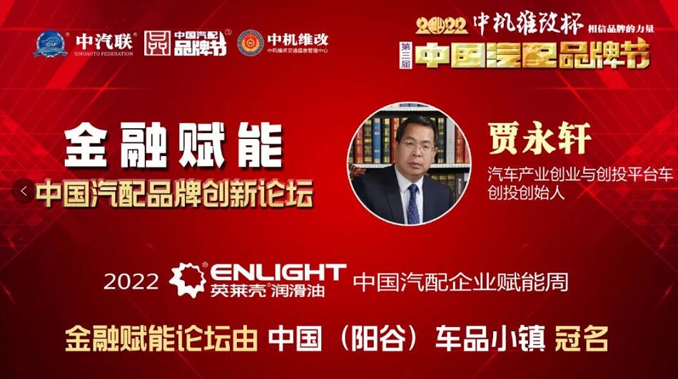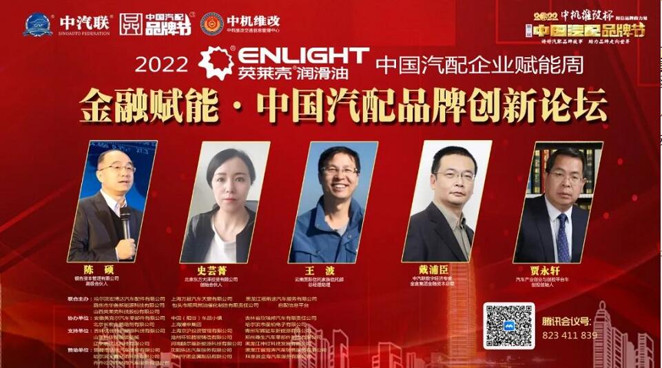 2022年5月16日,“2022 英萊殼杯 中國(guó)汽配品牌賦能周”的首場(chǎng)活動(dòng),由中國(guó)(陽(yáng)谷)車(chē)品小鎮(zhèn)特約冠名的“金融賦能 · 2022中國(guó)汽配品牌創(chuàng)新論壇”在線(xiàn)上成功舉行,銀杏資本管理有限公司高級(jí)合伙人陳碩 、北京東方大澤投資有限公司創(chuàng)始合伙人史蕓菁、云南國(guó)際信托家族信托部總經(jīng)理助理王波、金盒集團(tuán)金融資本總裁、中汽聯(lián)首席數(shù)字經(jīng)濟(jì)專(zhuān)家戴浦臣 、汽車(chē)產(chǎn)業(yè)創(chuàng)業(yè)與創(chuàng)投平臺(tái)——車(chē)創(chuàng)投創(chuàng)始人賈永軒等五位金融界大咖作為嘉賓做了精彩分享,得到了眾多汽配企業(yè)家的關(guān)注,點(diǎn)贊量達(dá)到了550000個(gè)。金融賦能論壇由中汽聯(lián)執(zhí)行會(huì)長(zhǎng)、中汽協(xié)汽車(chē)技術(shù)研究院院長(zhǎng)喬永鋒主持。