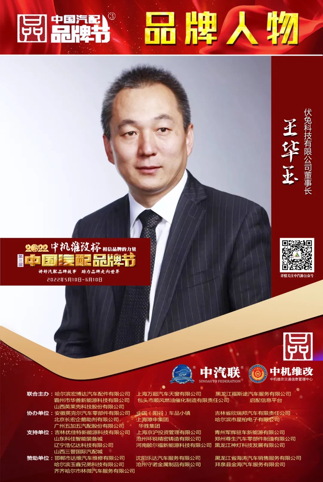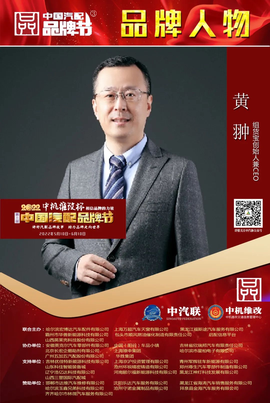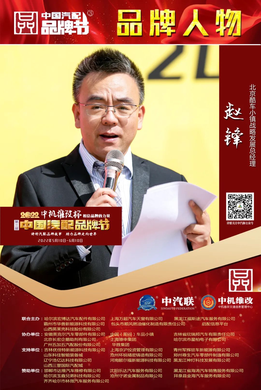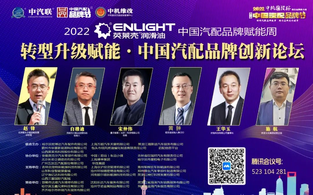 2022中機(jī)維改杯中國汽配品牌節(jié)由中機(jī)維改交通信息管理中心獨(dú)家總冠名,由中汽聯(lián)、中汽配、中機(jī)維改共同主辦;哈爾濱宏博達(dá)汽車配件有限公司、上海萬超汽車天窗有限公司、 黑龍江福斯途汽車服務(wù)有限公司、包頭市順風(fēng)燃油催化器制造有限責(zé)任公司、霸州市華善新能源科技有限公司、啟配信息平臺、山西英萊殼科技股份有限公司聯(lián)合主辦;由中國(陽谷)車品小鎮(zhèn)、華勝集團(tuán)、上海燎申集團(tuán)、吉林欣瑞邦汽車有限責(zé)任公司、安徽英克爾汽車零部件有限公司、北京長宏企鵝助劑有限公司、哈爾濱市星柏電子有限公司、廣州五加五汽配股份有限公司友情協(xié)辦;由吉林優(yōu)佳特新能源科技有限公司、上海京滬投資管理有限公司、青州軍輝駐車新能源有限公司、山東科佳智能裝備城、鄭州尊生汽車零部件制造有限公司、滄州環(huán)銳精密鑄造有限公司、遼寧浩億達(dá)科技有限公司、河南頤爾福新能源科技有限公司、黑龍江神燈科技發(fā)展有限公司、山西三晉國際汽配城、歐神石油化工科技(北京)有限公司、碳立方科技有限公司特別支持;邯鄲市達(dá)維汽車維修有限公司、沈陽樂達(dá)汽車服務(wù)有限公司、黑龍江省海濤汽車銷售服務(wù)有限公司、哈爾濱玉鑫兄弟科技有限公司、滄州守諾金屬制品有限公司、拜泉縣金海汽車服務(wù)有限公司、齊齊哈爾市林微汽車服務(wù)有限公司友情贊助;由德州市鑫雙恒汽車服務(wù)有限公司、浚縣李春亮汽車維修門市部 、滄州春立汽車服務(wù)有限公司、臨沂富裕汽車服務(wù)有限公司、綏中縣宏騰汽車服務(wù)有限公司、榆樹市鑫運(yùn)程汽車服務(wù)限公司、綏中縣鑫發(fā)汽車服務(wù)有限公司、臨清市浩航汽車服務(wù)有限公司、中能國業(yè)(北京)科技有限公司特別祝賀