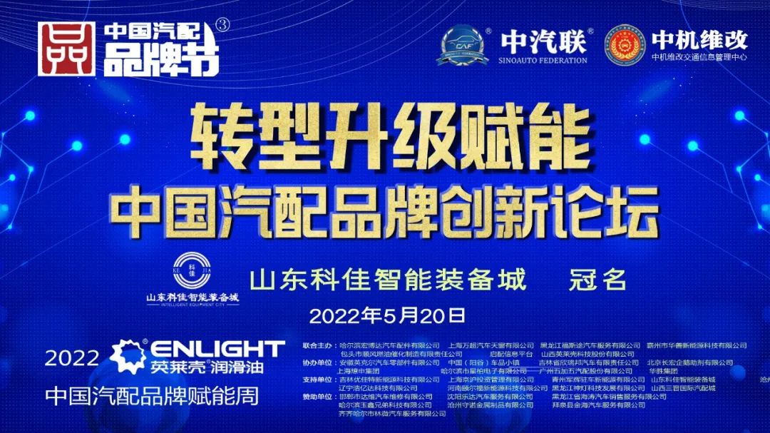2022年5月20日,“2022 英萊殼杯 中國汽配品牌賦能周”的第五場活動,由 山東科佳智能裝備城 特約冠名播出的“轉(zhuǎn)型升級賦能 · 2022中國汽配品牌創(chuàng)新論壇”在線上成功舉行。
