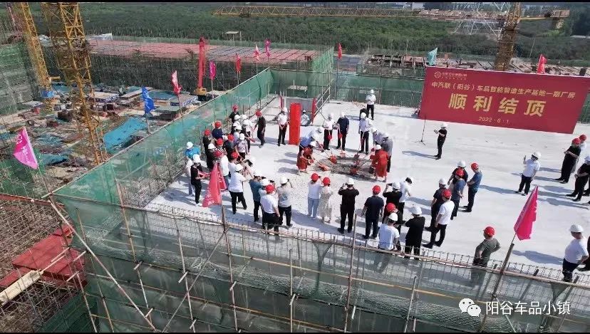 中汽聯(lián)(陽谷)車品智能制造基地一期廠房結(jié)頂儀式圓滿舉行