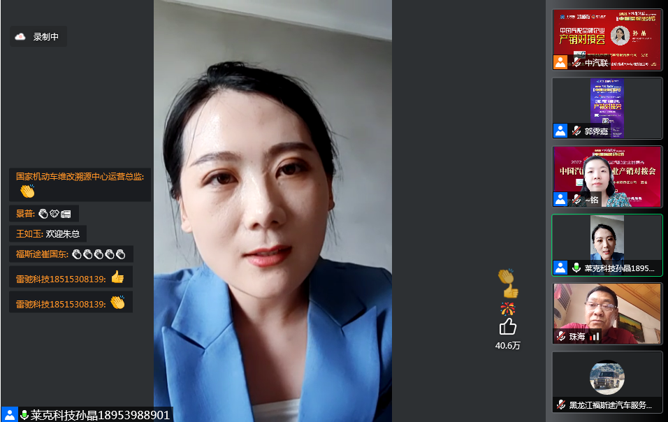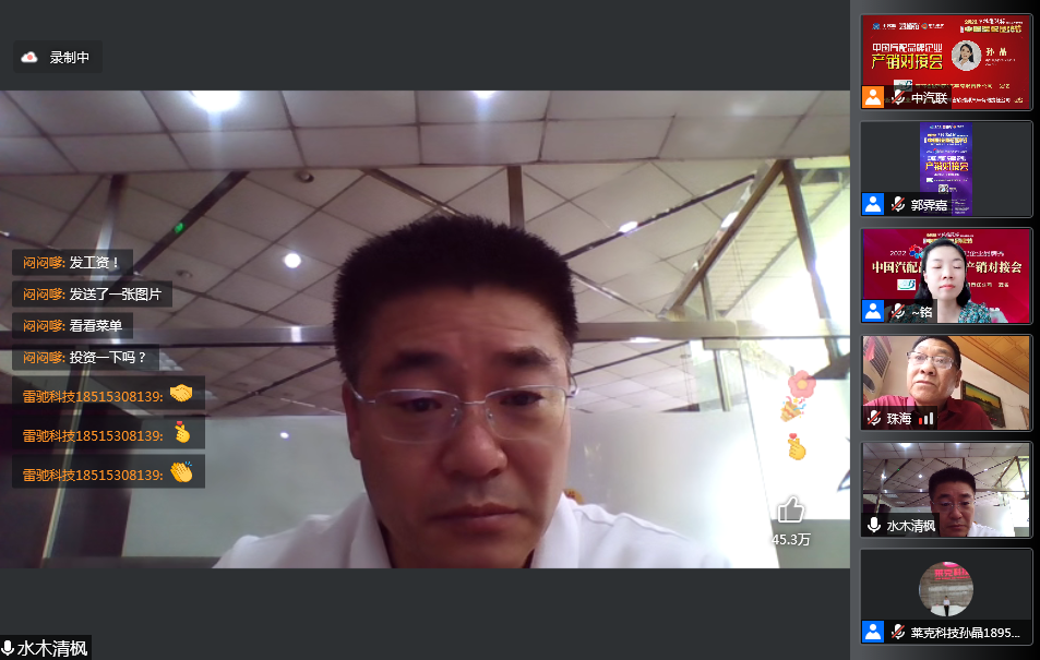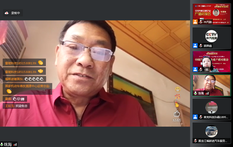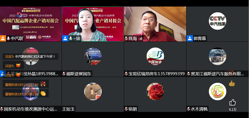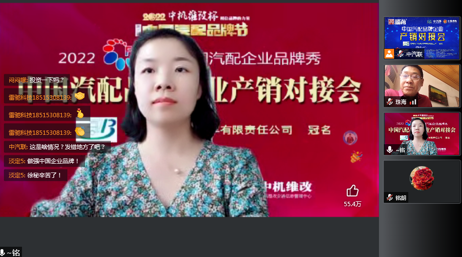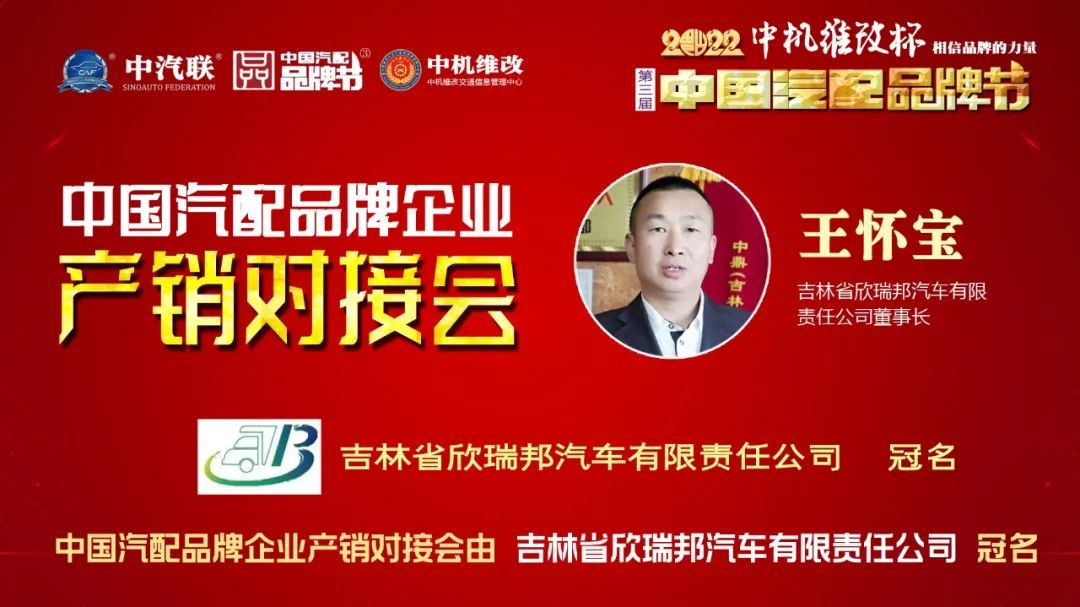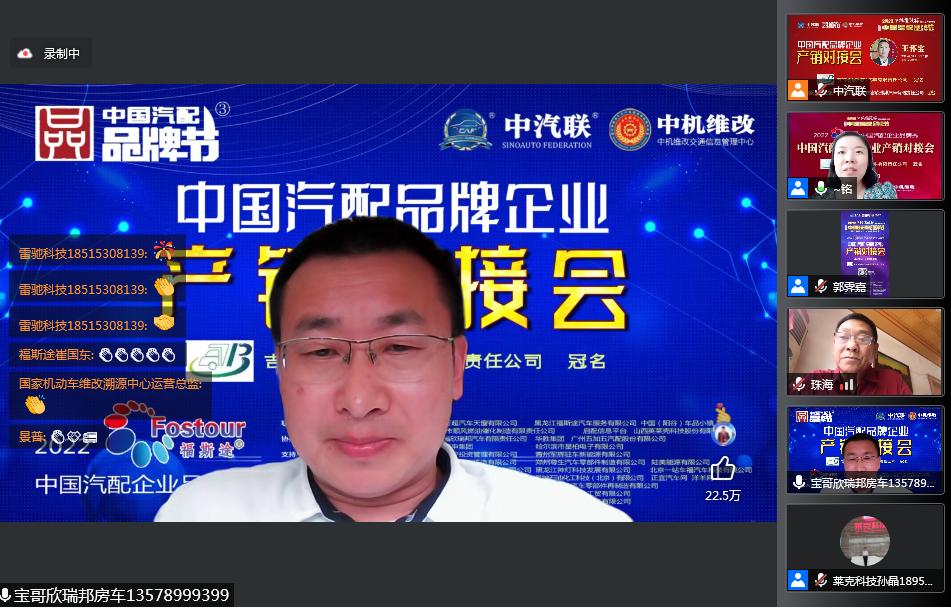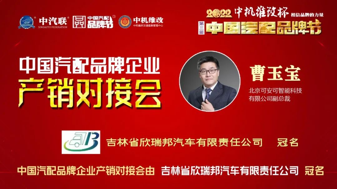 2022年6月1日,“2022 福斯途杯 中國汽配企業(yè)品牌秀”的第三場活動,由 吉林省欣瑞邦汽車有限責(zé)任公司 特約冠名播出的2022中國汽配品牌企業(yè)產(chǎn)銷對接會在線上成功召開,吉林省欣瑞邦汽車有限責(zé)任公司董事長王懷寶、商丘市珂辰汽車零配件有限公司總經(jīng)理朱新海、山東萊克科技有限公司品宣部長孫晶、北京可安可智能科技有限公司副總裁曹玉寶等嘉賓出席汽配企業(yè)品牌秀并做了精彩分享,引起了行業(yè)的廣泛關(guān)注,點贊數(shù)量達到56萬個。2022中國汽配品牌企業(yè)產(chǎn)銷對接會由中汽聯(lián)執(zhí)行秘書長、中國汽配品牌節(jié)常務(wù)秘書長徐銘主持。