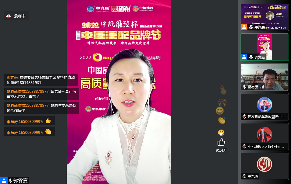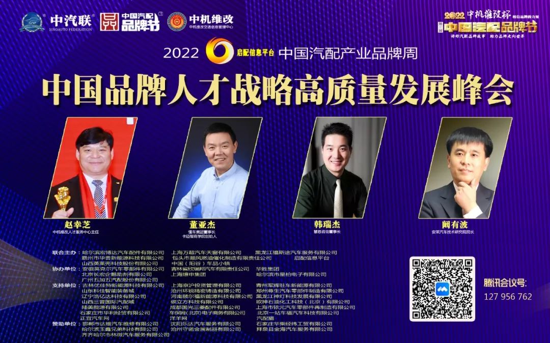 2022年6月9日,“2022 啟配信息平臺杯 中國汽配產(chǎn)業(yè)品牌周”的第四場活動,由  中機維改人才交流中心 特約冠名播出的2022中國品牌人才戰(zhàn)略高質(zhì)量發(fā)展峰會 在線上成功舉行,中機維改人才服務(wù)中心主任趙幸芝,懂車集團董事長、卡邁智商學(xué)院創(chuàng)始人董亞杰,慧恩咨詢董事長韓瑞杰,安萊汽車技術(shù)研究院院長闞有波 等四位汽配平臺大咖出席汽配產(chǎn)業(yè)品牌周并做了精彩分享,引起了廣泛關(guān)注,點贊數(shù)量達(dá)到98萬個。