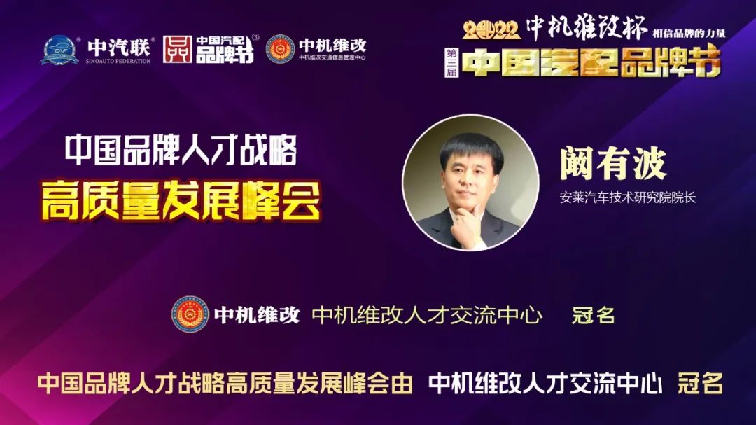 安萊汽車技術(shù)研究院院長闞有波  出席2022中國品牌人才戰(zhàn)略高質(zhì)量發(fā)展峰會并做精彩分享。闞院長是全國汽車維修行業(yè)知名專家,先后畢業(yè)于北京市交通運輸學(xué)院和北京工業(yè)大學(xué);自1998年開始,分別赴日本、韓國、德國和法國進修學(xué)習(xí),赴日本豐田4S店學(xué)習(xí)經(jīng)營管理?,F(xiàn)擔(dān)任清華大學(xué)基礎(chǔ)工業(yè)訓(xùn)練中心客座教授,長白山技能名師,吉林交通學(xué)院特聘講師,中國汽車診斷師大賽總策劃、總裁判長,安萊(北京)汽車技術(shù)研究院院長、總工程師,安萊路泰汽車科技有限公司董事長。他長期在維修一線工作,寫下了近10萬字的修理技術(shù)日記;發(fā)表了大量各種汽車技術(shù)文章。之后又參與和從事企業(yè)的生產(chǎn)管理、業(yè)務(wù)管理、客戶管理、技術(shù)管理工作。他從一個普通職業(yè)院校畢業(yè)生,到走進清華大學(xué)進行汽車診斷講座;從一個技能大賽冠軍到創(chuàng)辦國內(nèi)第一個汽車診斷師大賽;從一個普通車間技術(shù)人員,到走進創(chuàng)辦國內(nèi)第一家專門從事汽車售后服務(wù)研究的研究員;從一個普通技術(shù)創(chuàng)新的實現(xiàn),到汽車服務(wù)一個獨立系統(tǒng)的模塊開發(fā),闞有波已成為中國汽車維修行業(yè)的領(lǐng)軍人物。