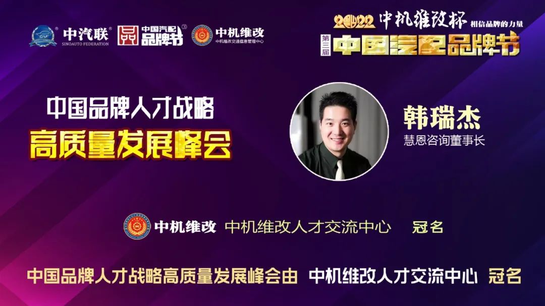 慧恩咨詢董事長韓瑞杰 出席2022中國品牌人才戰(zhàn)略高質(zhì)量發(fā)展峰會并做精彩分享。韓老師從事培訓(xùn)教育事業(yè)十七年,從事汽車服務(wù)行業(yè)十五年時間,親自走訪上千家店面與企業(yè)家進行深入溝通探討,服務(wù)著數(shù)千家的終端店面和企業(yè)。對培訓(xùn)和實戰(zhàn)操作有著非常豐富的經(jīng)驗,也是將培訓(xùn)理念成功在山東汽車服務(wù)行業(yè)落地第一人。曾經(jīng)幫助實體企業(yè)三年五倍速的業(yè)績增長。團隊人員三年十倍增長變化,打造了眾所周知的企業(yè)文化系統(tǒng),受到了廣大客戶的歡迎。韓老師立足山東,服務(wù)全國,上千家山東汽車服務(wù)知名店面都接受過韓老師的培訓(xùn),得到了很大的幫助,具有良好的影響力和口碑。他睿智、幽默、深刻、直指核心,注重實戰(zhàn)、注重訓(xùn)練、追求實效,重視成果轉(zhuǎn)化、可落地性極強。是國家注冊高級人力資源師、企業(yè)團隊心態(tài)訓(xùn)練超級培訓(xùn)師,是全國知名的企業(yè)實戰(zhàn)派運營專家。