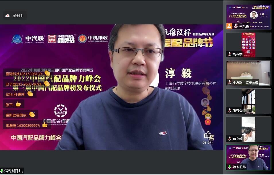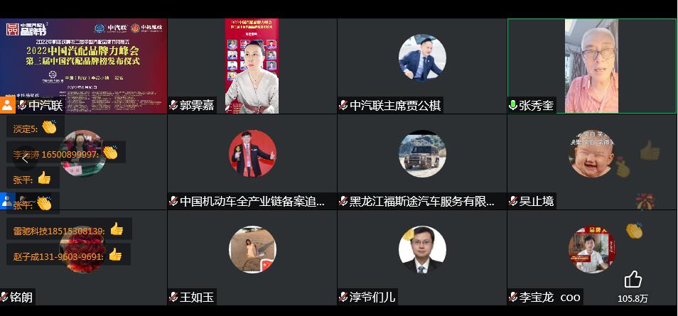 2022年6月10日,由 中國(陽谷)車品小鎮(zhèn) 特約冠名播出的2022中國汽配品牌力峰會暨第三屆中國汽配品牌榜發(fā)布儀式 在線上成功舉行,中國汽車服務(wù)業(yè)委員會會長、中國汽車工業(yè)協(xié)會后市場委員會執(zhí)行副理事長、中國汽車工業(yè)配件銷售有限公司原董事長、中汽聯(lián)會長王篤洋,上海萬超汽車天窗有限公司董事長、中汽聯(lián)主席、中國汽配品牌節(jié)主席賈公棋,國家汽車零部件產(chǎn)品質(zhì)量監(jiān)督檢驗中心副主任、中國汽配品牌節(jié)組委會主任楊貴霖,中國機動車全產(chǎn)業(yè)鏈備案追溯中心主任、中機維改交通信息管理中心主任趙幸芝,浙江省汽摩配商會會長、瑞立集團(tuán)董事長張曉平,順風(fēng)燃油催化器制造有限公司總經(jīng)理李銘朗,黑龍江福斯途汽車服務(wù)有限公司董事長溫勝義,宏博達(dá)科技集團(tuán)有限公司總裁李寶龍,汽配貓創(chuàng)始人趙建民,上海萬位數(shù)字技術(shù)股份有限公司副總經(jīng)理淳毅,華利汽配連鎖總經(jīng)理孫耀瑋,中國(陽谷)車品小鎮(zhèn)總裁吳志平,安徽太和晶宮國際汽車城總經(jīng)理蔡興超,中汽聯(lián)示范基地委員會會長張秀奎,中汽聯(lián)秘書長、中國汽配品牌節(jié)副主席兼秘書長郭霽嘉 等汽配大咖出席中國汽配品牌節(jié)閉幕式并做了精彩分享,引起了廣泛關(guān)注,點贊數(shù)量達(dá)到124.2萬個。