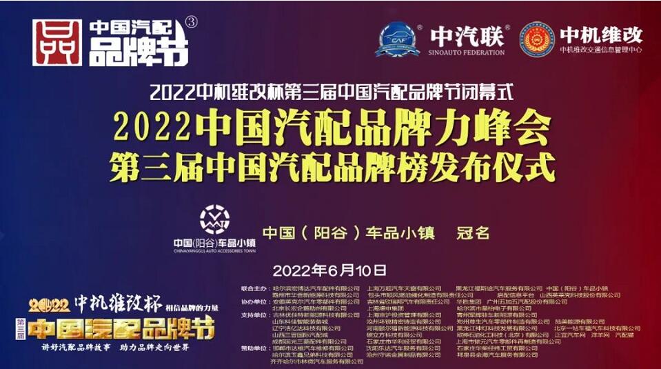 2022中機維改杯中國汽配品牌節(jié)由中機維改交通信息管理中心獨家總冠名,由中汽聯(lián)、中汽配、中機維改 共同主辦;哈爾濱宏博達(dá)汽車配件有限公司、上海萬超汽車天窗有限公司、中國(陽谷)車品小鎮(zhèn)、黑龍江福斯途汽車服務(wù)有限公司、包頭市順風(fēng)燃油催化器制造有限責(zé)任公司、霸州市華善新能源科技有限公司、啟配信息平臺、山西英萊殼科技股份有限公司 聯(lián)合主辦;由華勝集團(tuán)、上海燎申集團(tuán)、吉林欣瑞邦汽車有限責(zé)任公司、安徽英克爾汽車零部件有限公司、北京長宏企鵝助劑有限公司、哈爾濱市星柏電子有限公司、廣州五加五汽配股份有限公司 友情協(xié)辦;由吉林優(yōu)佳特新能源科技有限公司、上海京滬投資管理有限公司、青州軍輝駐車新能源有限公司、山東科佳智能裝備城、鄭州尊生汽車零部件制造有限公、滄州環(huán)銳精密鑄造有限公司、遼寧浩億達(dá)科技有限公司、河南頤爾福新能源科技有限公司、黑龍江神燈科技發(fā)展有限公司、山西三晉國際汽配城、歐神石油化工科技(北京)有限公司、碳立方科技有限公司、陸美能源有限公司、上海市銥元汽車零部件再制造有限公司、成都國光三菱配件有限公司、石家莊市華利經(jīng)貿(mào)有限公司、車保姆(北京)電子商務(wù)有限公司、北京一站車福汽車科技有限公司、正宜汽車網(wǎng)、洋羊網(wǎng)、汽配貓 特別支持;邯鄲市達(dá)維汽車維修有限公司、沈陽樂達(dá)汽車服務(wù)有限公司、哈爾濱玉鑫兄弟科技有限公司、滄州守諾金屬制品有限公司、拜泉縣金海汽車服務(wù)有限公司、齊齊哈爾市林微汽車服務(wù)有限公司、石家莊華柴經(jīng)緯工貿(mào)有限公司 友情贊助;由德州市鑫雙恒汽車服務(wù)有限公司、??h李春亮汽車維修門市部 、滄州春立汽車服務(wù)有限公司、臨沂富裕汽車服務(wù)有限公司、綏中縣宏騰汽車服務(wù)有限公司、榆樹市鑫運程汽車服務(wù)限公司、綏中縣鑫發(fā)汽車服務(wù)有限公司、臨清市浩航汽車服務(wù)有限公司、中能國業(yè)(北京)科技有限公司 特別祝賀。