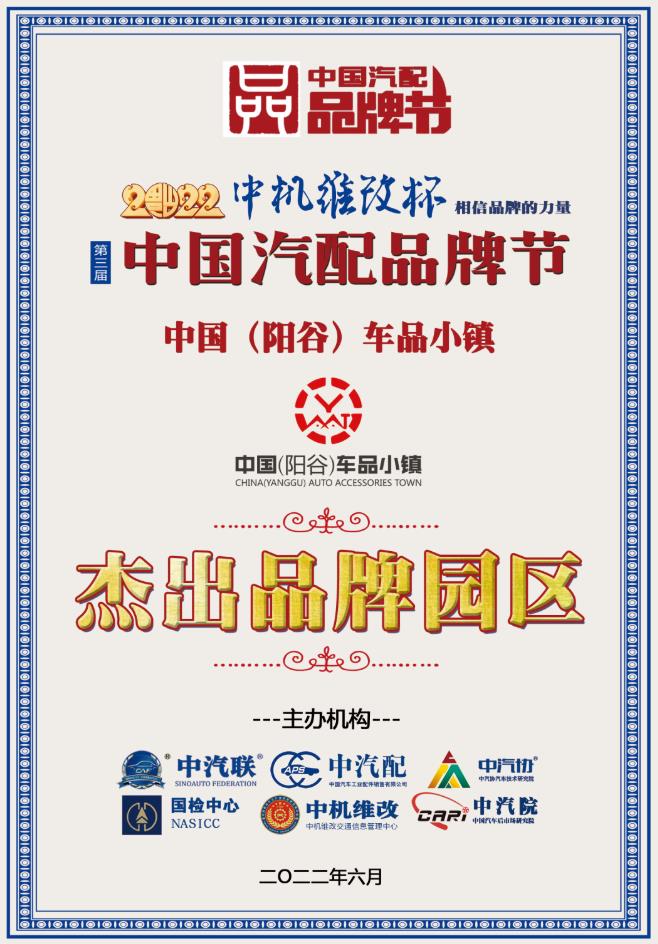 陽谷車品小鎮(zhèn)榮膺2022中國汽配行業(yè)兩項(xiàng)品牌大獎(jiǎng)