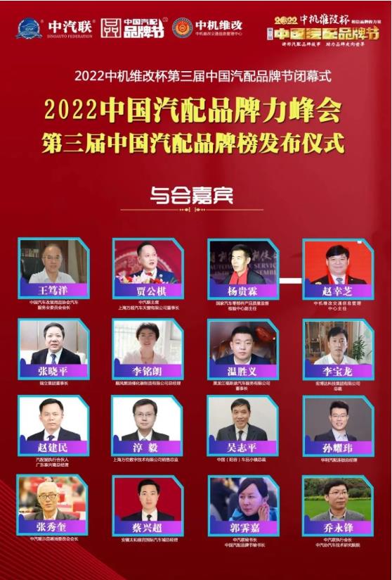 2022年6月10日,為期一個(gè)月的2022中機(jī)維改杯第三屆中國汽配品牌節(jié)圓滿落幕,中國汽車服務(wù)業(yè)委員會(huì)會(huì)長、中國汽車工業(yè)配件銷售有限公司原董事長王篤洋,中汽聯(lián)主席、上海萬超汽車天窗有限公司董事長賈公棋,國家汽車零部件產(chǎn)品質(zhì)量監(jiān)督檢驗(yàn)中心副主任、中汽環(huán)球汽配用品檢測(cè)認(rèn)證中心主任楊貴霖,浙江省汽摩配商會(huì)會(huì)長、瑞立集團(tuán)董事長張曉平等領(lǐng)導(dǎo)和嘉賓出席閉幕式——“2022中國汽配品牌力峰會(huì)暨第三屆中國汽配品牌榜發(fā)布儀式”,引起了行業(yè)的廣泛關(guān)注,點(diǎn)贊數(shù)量達(dá)到124.2萬個(gè)。閉幕式由中汽聯(lián)執(zhí)行會(huì)長、中汽協(xié)汽車技術(shù)研究院院長喬永鋒主持。