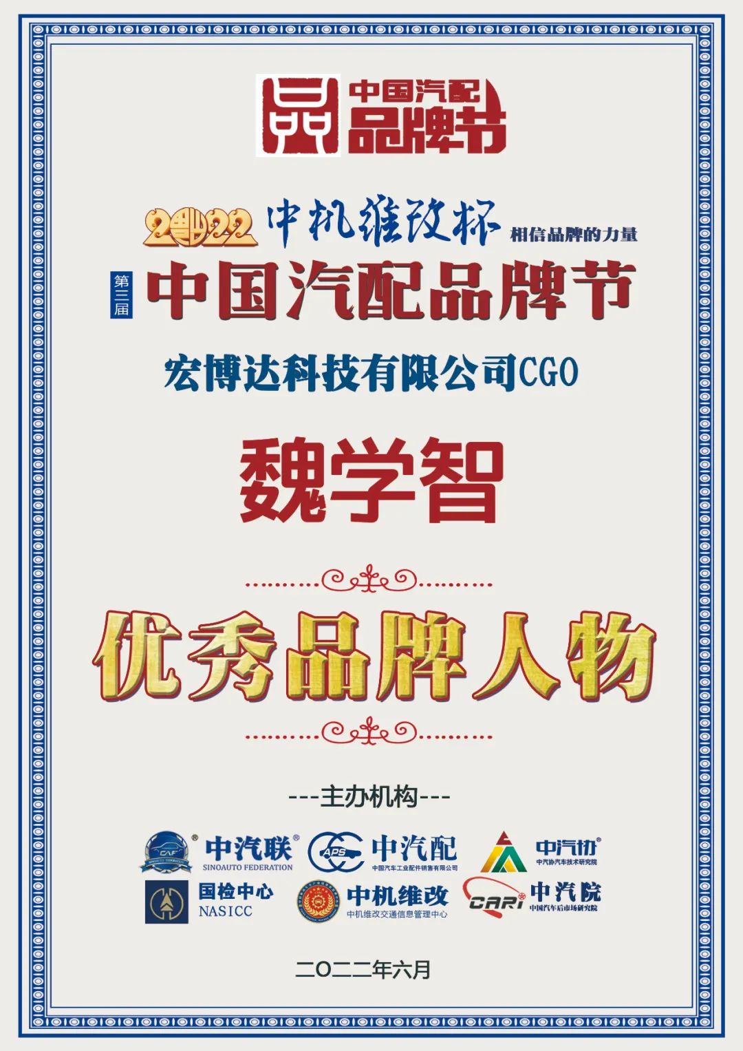 據(jù)《2022中國(guó)汽配品牌榜》榜單顯示:魏學(xué)智榮膺“2022中國(guó)汽配行業(yè)優(yōu)秀品牌人物”大獎(jiǎng)。