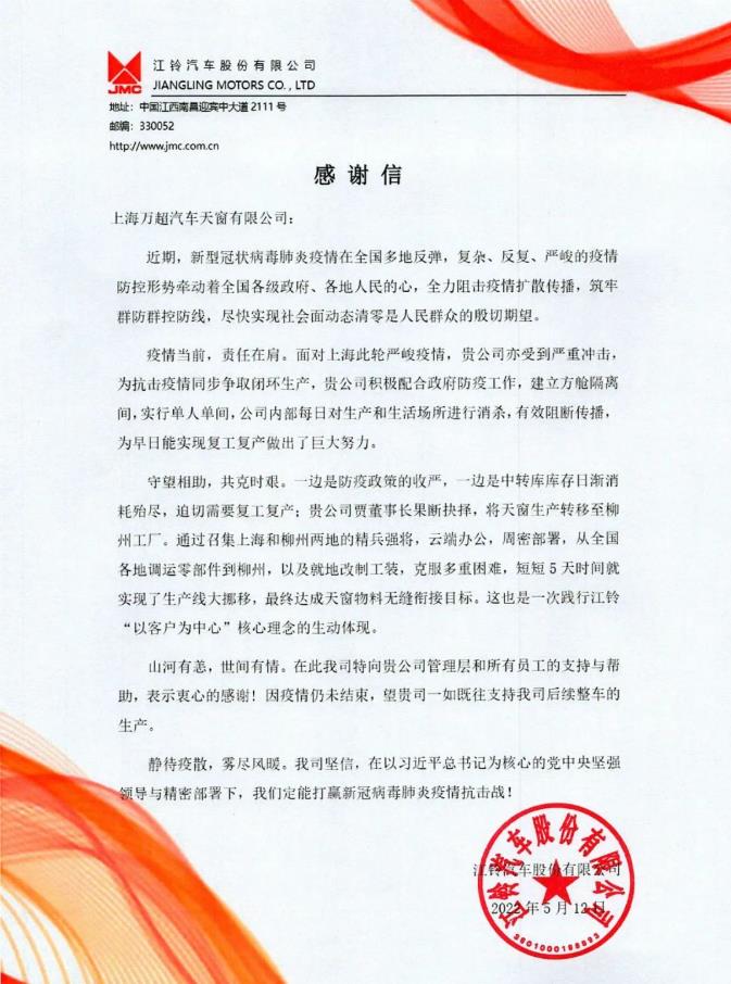 2022年6月22日上午9:30,上海市嘉定區(qū)政協(xié)副主席徐鋒一行蒞臨上海萬超汽車天窗有限公司考察調(diào)研,對企業(yè)在復工復產(chǎn)后,和疫情期間所面臨的各項工作難點進行調(diào)研,中汽聯(lián)主席、上海萬超汽車天窗有限公司董事長賈公棋親自對嘉定區(qū)政協(xié)領(lǐng)導的來訪表示熱烈的歡迎。