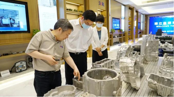 張建明書記一行參觀了瑞立國家級企業(yè)技術中心、產(chǎn)品展示廳,聽取了張曉平董事長匯報企業(yè)生產(chǎn)經(jīng)營、創(chuàng)新發(fā)展、汽車零部件智造項目進展等情況,聽取瑞立集團紀委書記馮乾存匯報“清廉瑞立”建設工作。