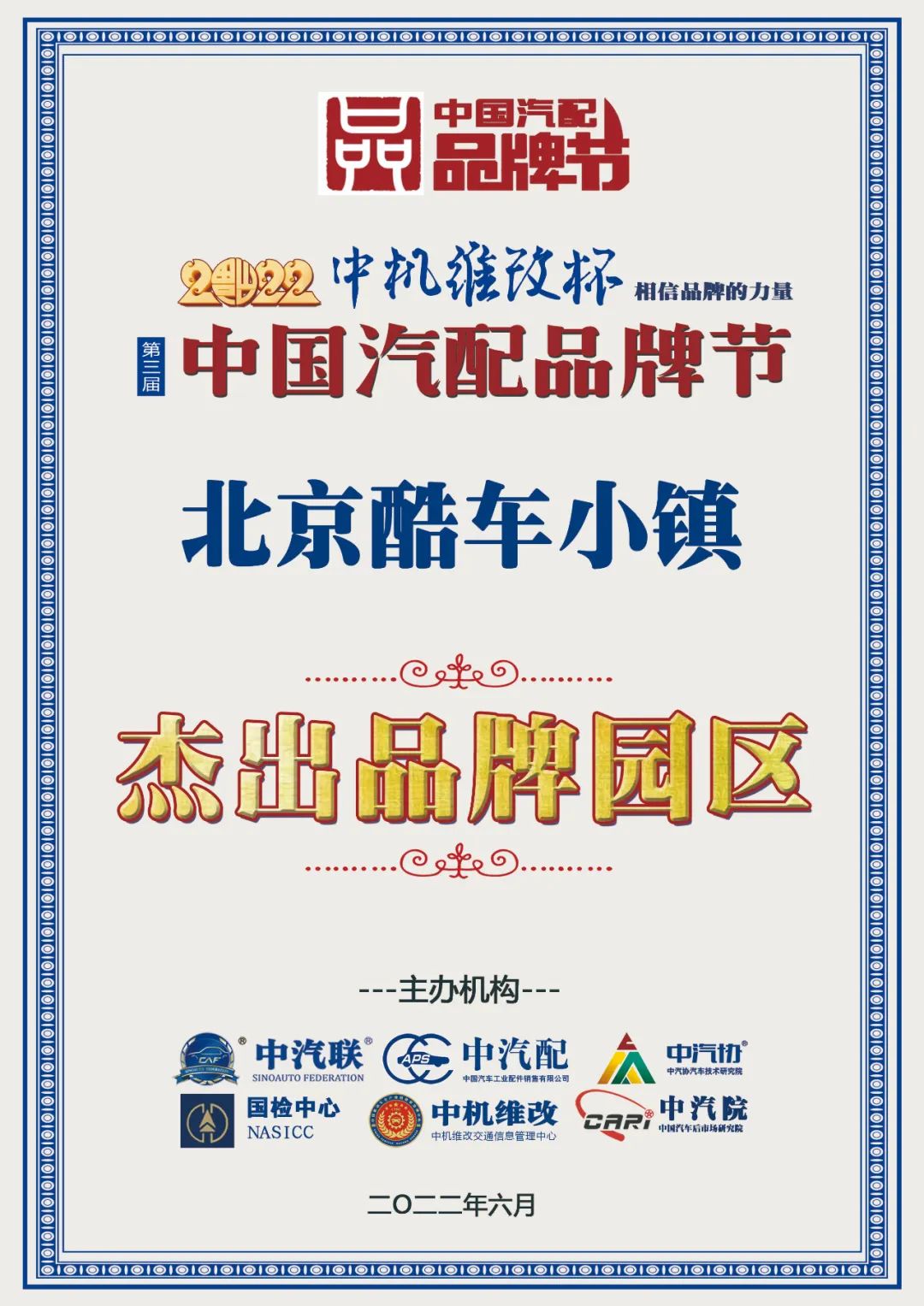 據(jù)《2022中國汽配品牌榜》榜單顯示:北京酷車小鎮(zhèn)榮膺“2022中國汽配杰出品牌園區(qū)”大獎。