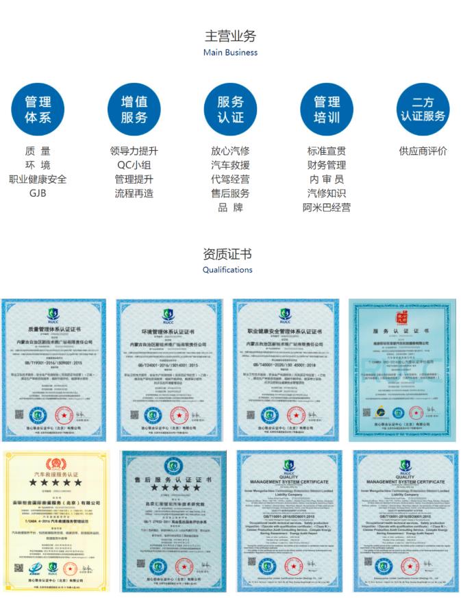 目前已經(jīng)具備質(zhì)量、環(huán)境、職業(yè)健康安全、汽車救援服務(wù)認(rèn)證、企業(yè)誠信認(rèn)證等多體系認(rèn)證資質(zhì)和能力