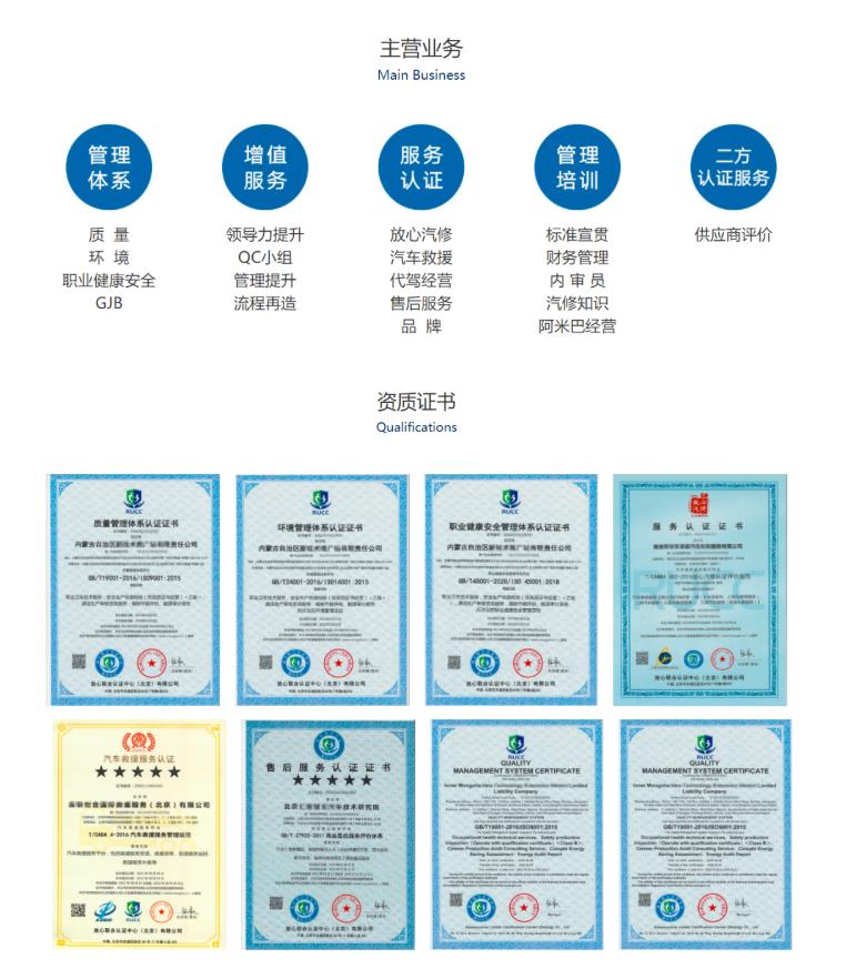 目前已經(jīng)具備質(zhì)量、環(huán)境、職業(yè)健康安全、汽車救援服務(wù)認(rèn)證、企業(yè)誠信認(rèn)證等多體系認(rèn)證資質(zhì)和能力