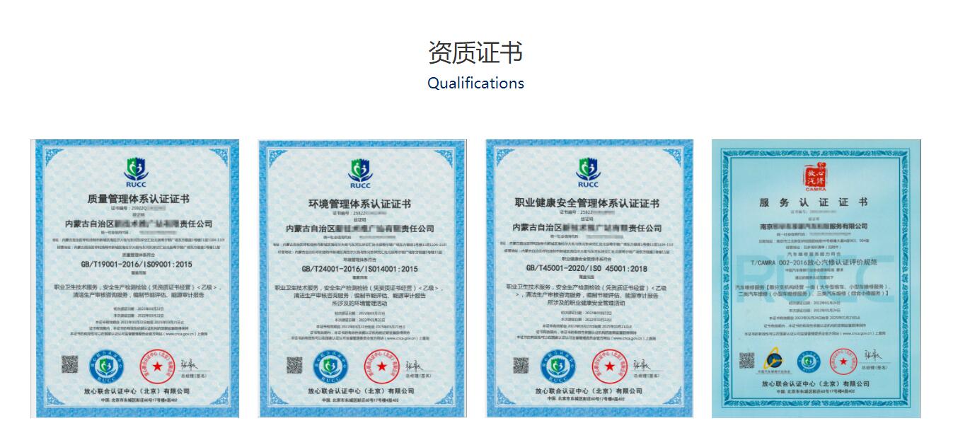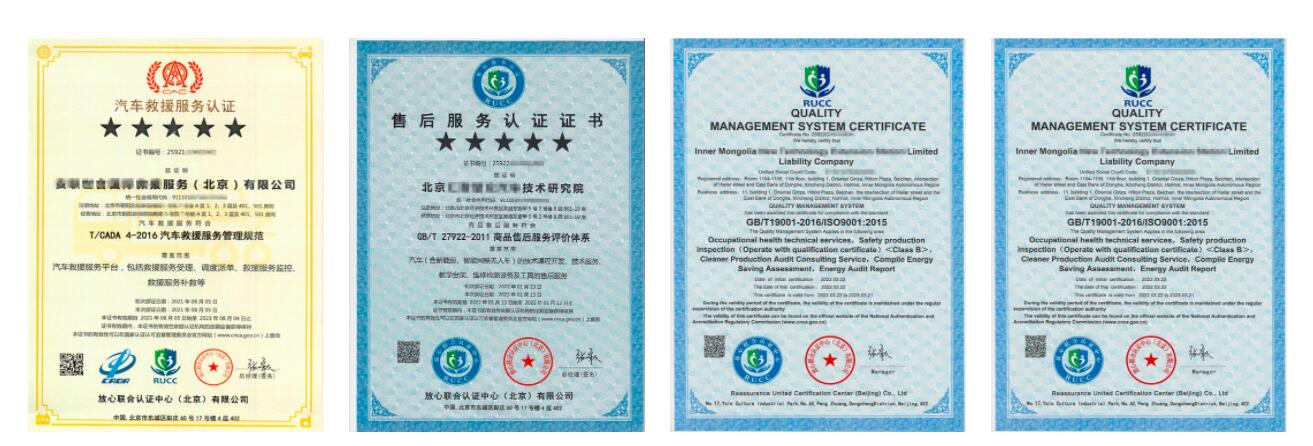 目前已經(jīng)具備質(zhì)量、環(huán)境、職業(yè)健康安全、汽車救援服務認證、企業(yè)誠信認證等多體系認證資質(zhì)和能力