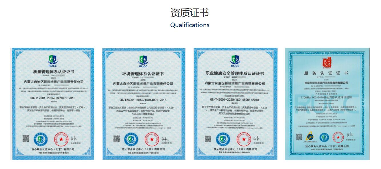 目前已經(jīng)具備質(zhì)量、環(huán)境、職業(yè)健康安全、汽車(chē)救援服務(wù)認(rèn)證、企業(yè)誠(chéng)信認(rèn)證等多體系認(rèn)證資質(zhì)和能力