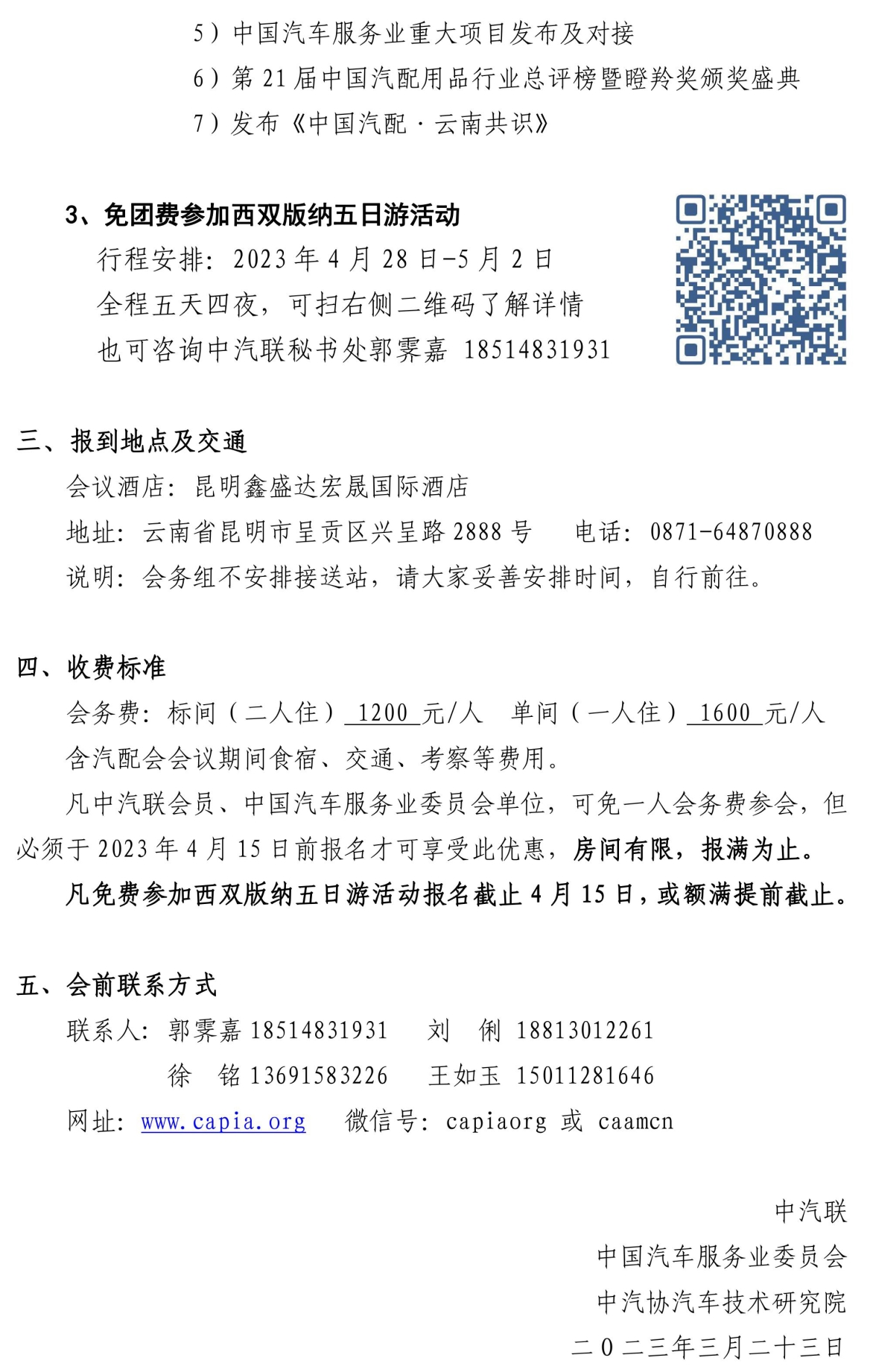 凡中汽聯(lián)會(huì)員、中國(guó)汽車服務(wù)業(yè)委員會(huì)單位,可免一人會(huì)務(wù)費(fèi)參會(huì),但必須于2023年4月15日前報(bào)名才可享受此優(yōu)惠,房間有限,先到先得,報(bào)滿為止。