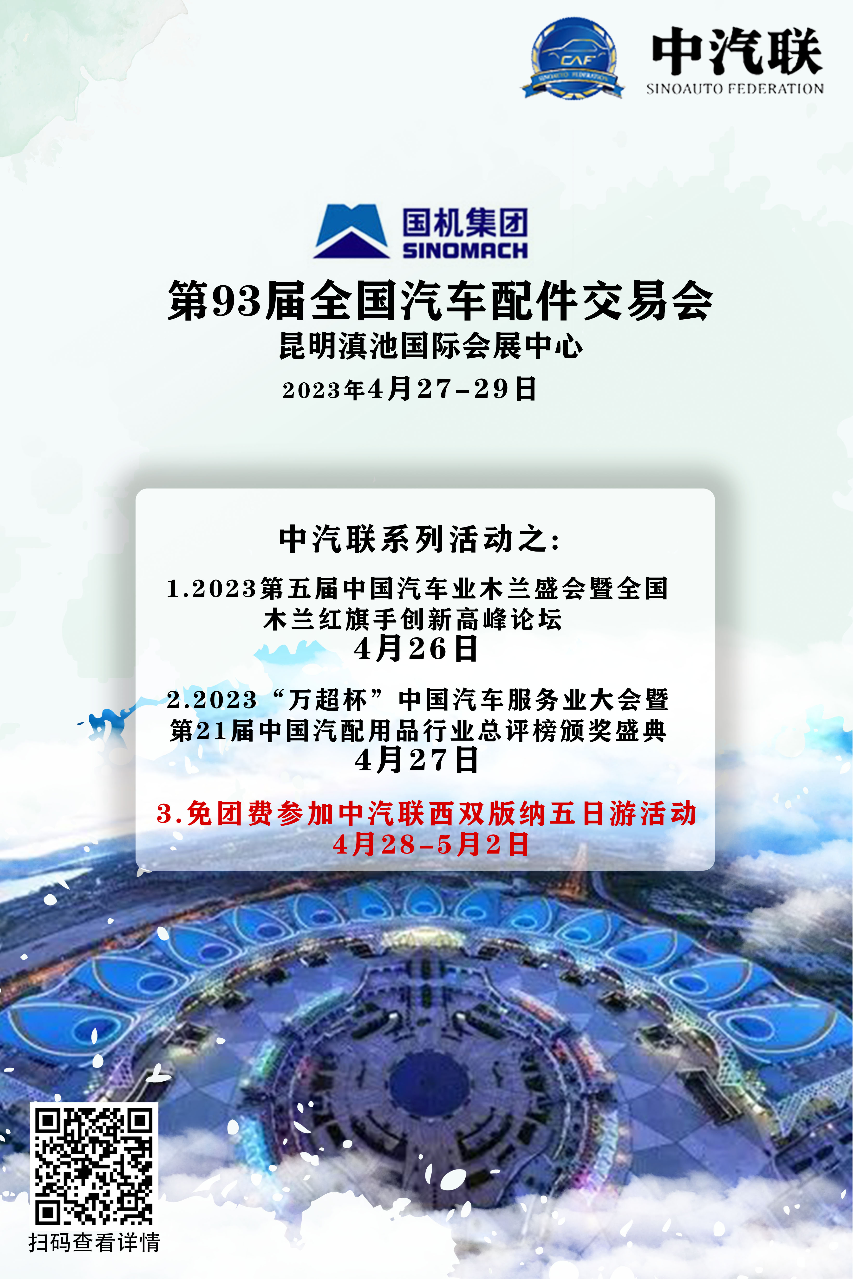 | 4月28日 | 上午 | 參觀第93屆汽配會(huì) / 考察昆明汽配市場(chǎng) |