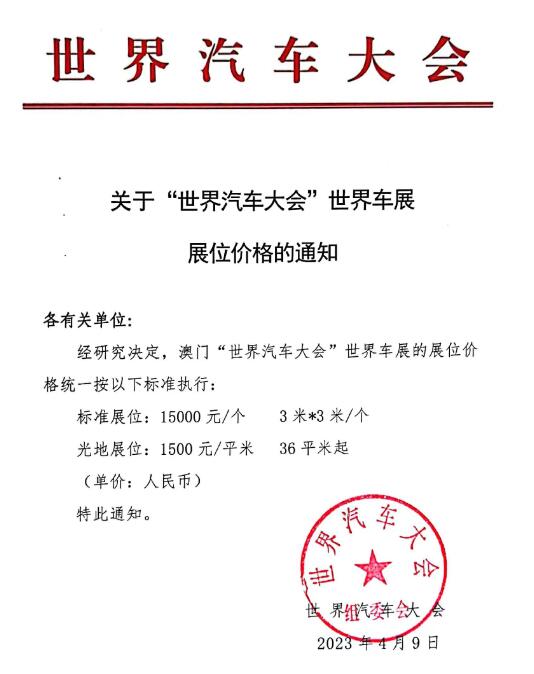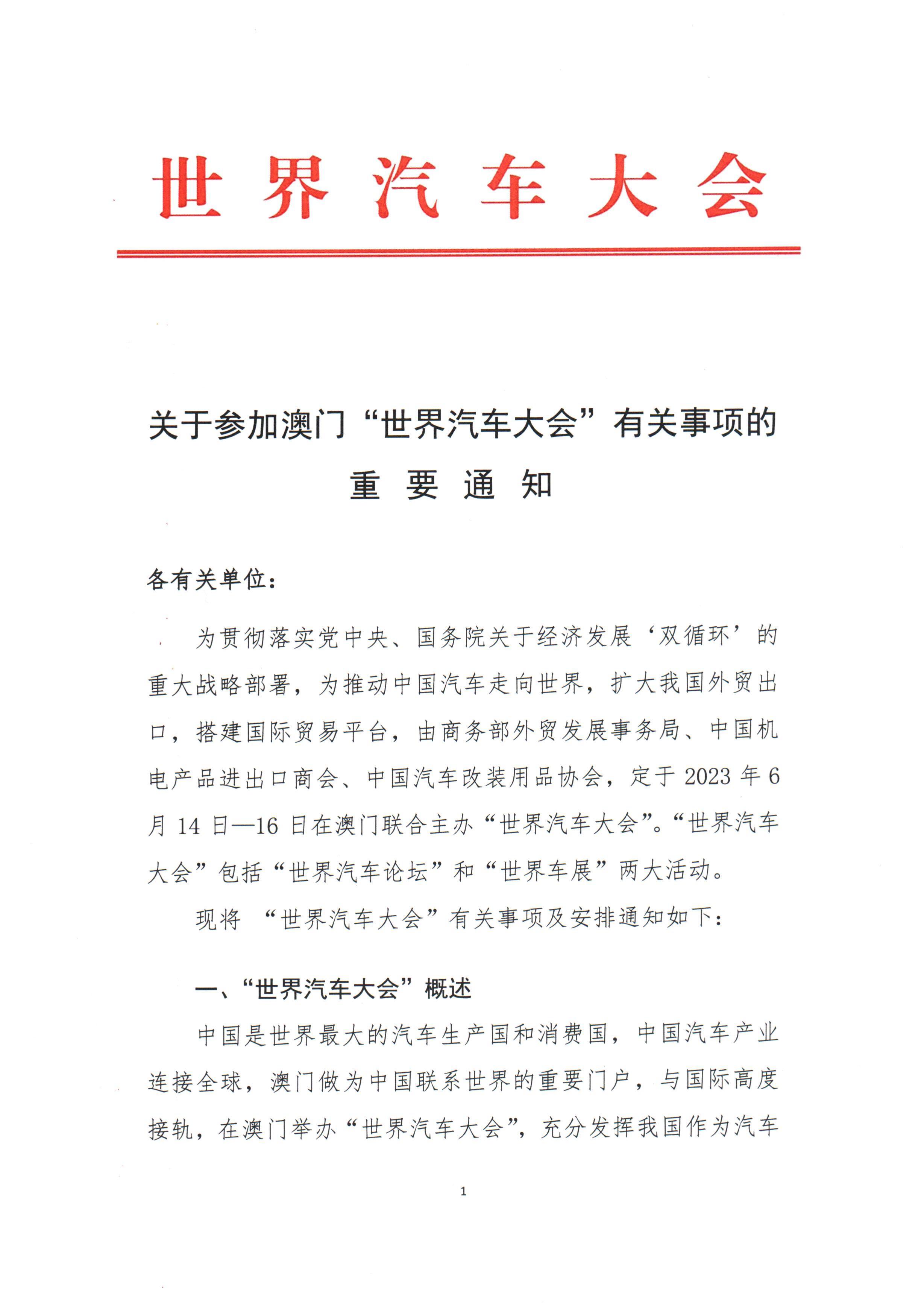 世界汽車大會將于6月在澳門舉辦