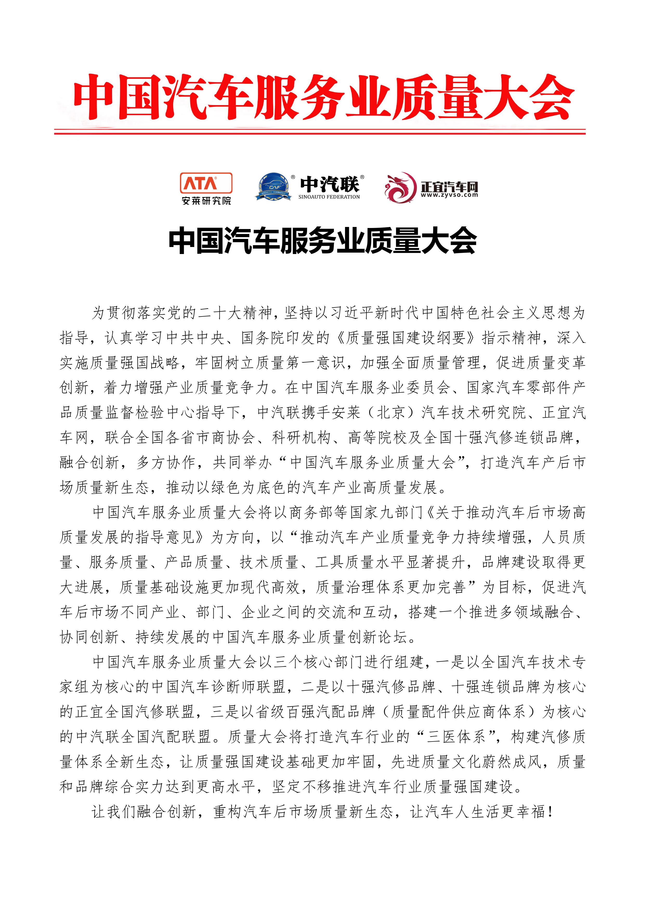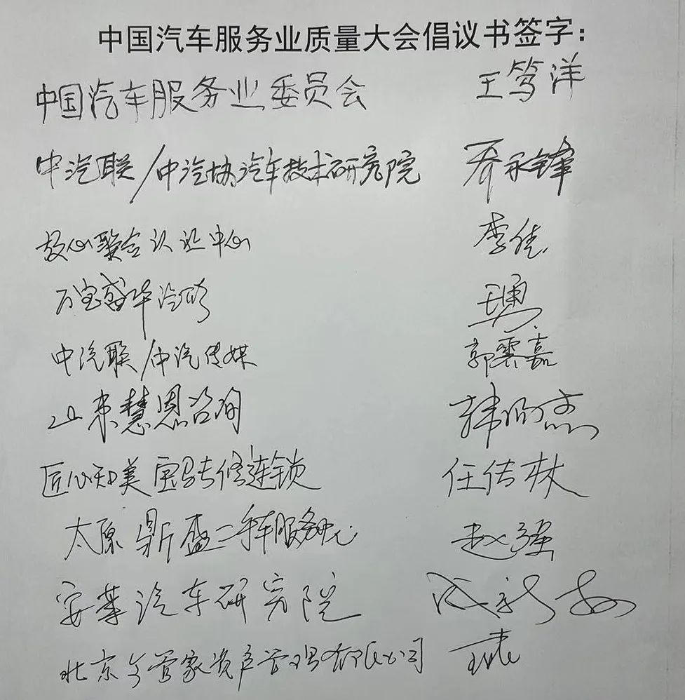 倡議書 | 中國汽車服務(wù)業(yè)質(zhì)量大會
