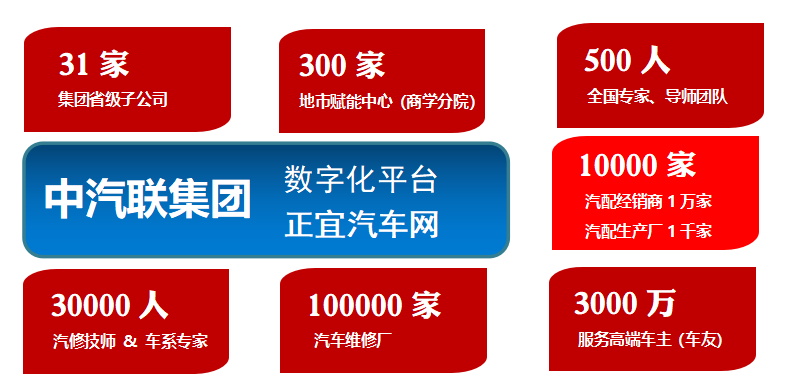 中汽聯(lián)集團(tuán)未來五年將建立31家升級分子公司,建立300家地市級賦能中心,組建超過500人的專家、導(dǎo)師團(tuán)隊(duì),整合1000家汽車配件生產(chǎn)廠家(品牌),聯(lián)合10000家汽車配件經(jīng)銷商,攜手全國30000名汽車修理技師和不同車系的專家,賦能全國100000家汽車維修廠,為全國的3000000萬名高端車主服務(wù)。同時(shí),中汽聯(lián)集團(tuán)文化也進(jìn)行了全新發(fā)布: