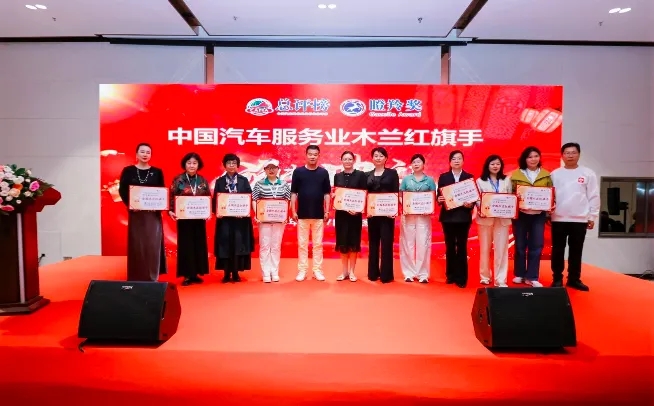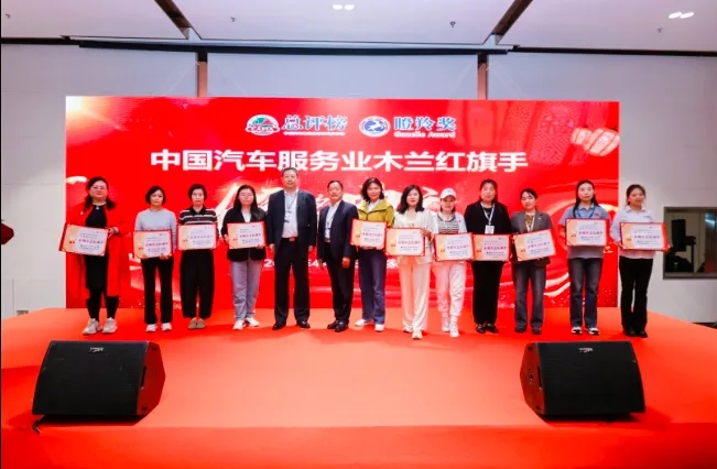 中汽聯(lián)執(zhí)行會長、中汽協(xié)汽車技術(shù)研究院院長喬永鋒和上海京滬投資有限公司董事長鐘建平為全國木蘭紅旗手頒發(fā)證書