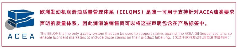 EELQMS是唯一可用于支持針對(duì)ACEA油類要求聲明的質(zhì)量體系,只有通過此系統(tǒng)的潤(rùn)滑油銷售商才可以將這些聲明包含在產(chǎn)品標(biāo)簽中。