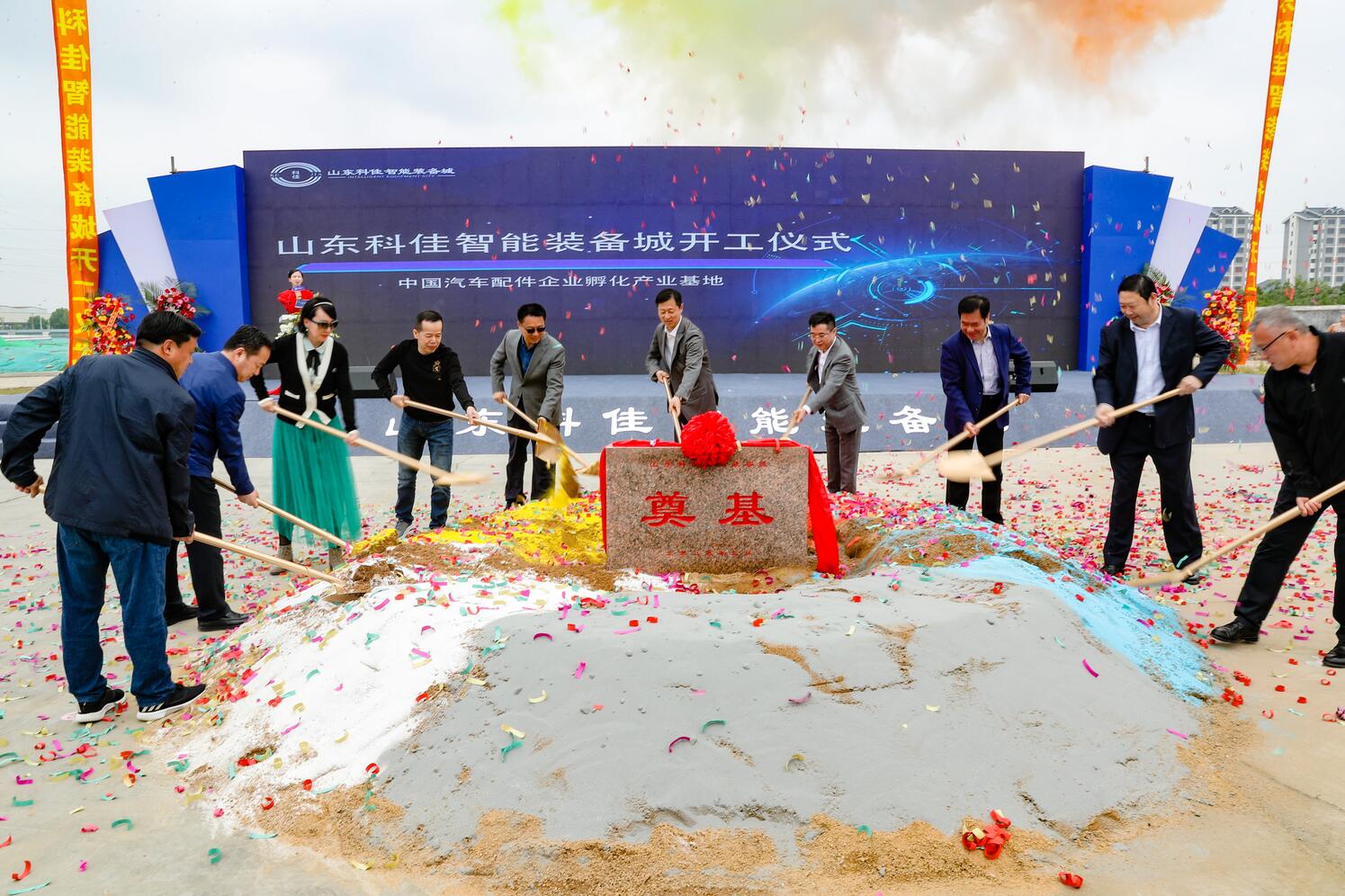 儀式上還進行了首批入駐企業(yè)集中簽約儀式,共有50余家汽配企業(yè)成功簽約入駐裝備城。在現(xiàn)場熱烈的掌聲和禮炮的轟鳴聲中,會同出席領(lǐng)導(dǎo)及嘉賓共同為項目奠基培土,山東科佳智能裝備城正式開工。