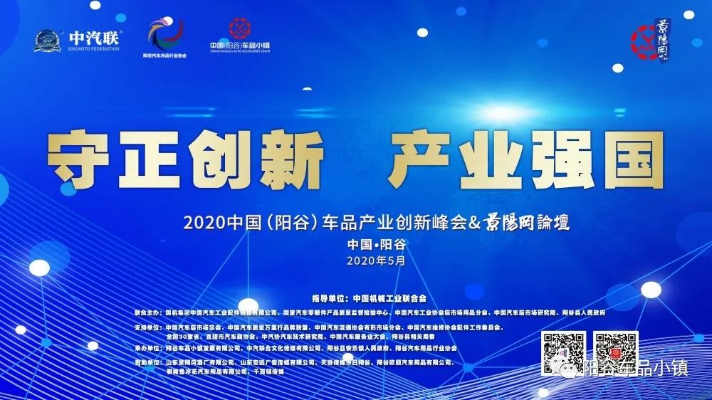5月30日,由國機(jī)集團(tuán)中國汽車工業(yè)配件銷售有限公司、國家汽車零部件產(chǎn)品質(zhì)量監(jiān)督檢驗(yàn)中心、中國汽車工業(yè)協(xié)會(huì)后市場用品分會(huì)、中國汽車后市場研究院、陽谷縣人民政府主辦,陽谷車品小鎮(zhèn)發(fā)展有限公司、中汽聯(lián)合文化傳媒有限公司、陽谷縣安樂鎮(zhèn)人民政府、陽谷汽車用品行業(yè)協(xié)會(huì)承辦的2020首屆中國(陽谷)車品產(chǎn)業(yè)創(chuàng)新峰會(huì)&景陽岡論壇活動(dòng)在陽谷景陽岡酒店三樓景陽岡廳隆重舉行。來自全國汽車行業(yè)的行業(yè)專家、主協(xié)辦單位領(lǐng)導(dǎo)、商會(huì)協(xié)會(huì)領(lǐng)導(dǎo)、生產(chǎn)企業(yè)代表、產(chǎn)業(yè)基地聯(lián)盟代表、其他行業(yè)代表等100多人歡聚一堂,共同探討在復(fù)雜多變的國際國內(nèi)市場環(huán)境中,尤其是疫情之后如何重塑中國汽車產(chǎn)業(yè)發(fā)展新格局,如何加強(qiáng)車品品牌建設(shè)以及如何將陽谷車品小鎮(zhèn)打造成中國車品第一鎮(zhèn)等話題展開討論。