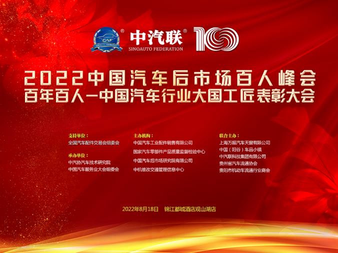 2022年8月18日,在全國汽車配件交易會組委會支持下,由中國汽車工業(yè)配件銷售有限公司、國家汽車零部件產(chǎn)品質量監(jiān)督檢驗中心、中國汽車后市場研究院、中機維改交通信息管理中心主辦,上海萬超汽車天窗有限公司、中汽聯(lián)科技集團有限公司、中國(陽谷)車品小鎮(zhèn)、貴州省汽車流通協(xié)會、貴陽市機動車流通行業(yè)商會聯(lián)合主辦,中汽協(xié)汽車技術研究院、中國汽車服務業(yè)大會組委會承辦的“2022年中國汽車后市場百人峰會暨百年百人-中國汽車行業(yè)大國工匠”在貴陽市錦江都城酒店盛大舉行,來自全國各地汽車后市場的代表近200多人參會,會議有中汽聯(lián)秘書長郭霽嘉主持。