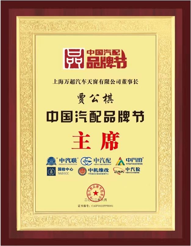 2022年6月26日,“上海萬超汽車天窗有限公司董事長賈公棋先生收到了一封來自北京的特殊認命書,”正式任命賈公棋董事長為中國汽配品牌節(jié)主席,賈公棋董事長在收到牌匾和聘書之后心中無比激動,感謝組織對他的高度認可以及信任,并表示既然組織這么信任他,接下去幾年一定要帶領(lǐng)大家辦好《中國汽配品牌節(jié)》這個重要的節(jié)日,履行自己的職責(zé)!