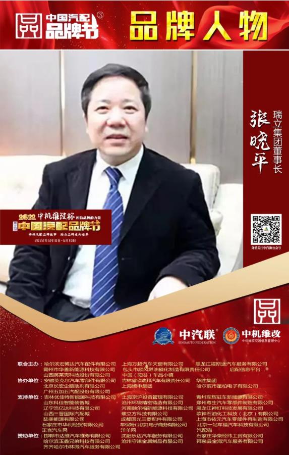 據(jù)《2022中國汽配品牌榜》榜單顯示:中汽聯(lián)主席團主席、瑞立集團董事長張曉平榮膺“2022中國汽配行業(yè)杰出品牌人物”。瑞立集團創(chuàng)辦于1987年,旗下現(xiàn)有全資、控股、參股企業(yè)20余家,產(chǎn)業(yè)跨越制造業(yè)、服務(wù)業(yè)。集團二產(chǎn)板塊主要從事汽車零部件、軌道車輛零部件的研發(fā)、制造和銷售。瑞立制造的軌道交通零部件在高鐵、動車、城軌、地鐵上廣泛應(yīng)用。北京奧運會、上海世博會上,都有瑞立產(chǎn)品的身影。瑞立先后被命名為中國汽車零部件百強企業(yè)、國家汽車零部件出口基地企業(yè)、國家火炬計劃重點高新技術(shù)企業(yè)、國家知識產(chǎn)權(quán)示范企業(yè)、中國民營企業(yè)500強、浙江省制造業(yè)百強、浙江省工業(yè)行業(yè)龍頭骨干企業(yè)、浙江省創(chuàng)新型領(lǐng)軍企業(yè)、浙江省高端裝備制造業(yè)骨干企業(yè)、浙江省“三名”培養(yǎng)試點企業(yè)、浙江省“重才愛才”先進單位。瑞立在“思路決定出路、戰(zhàn)略成就未來、細(xì)節(jié)決定成敗”的發(fā)展理念指引下,形成了“一業(yè)為主、適度多元經(jīng)營,多元投資、專業(yè)管理”格局,現(xiàn)已發(fā)展成為主營汽配,兼跨房地產(chǎn)、酒店服務(wù)、商業(yè)、貿(mào)易、文教等為一體的無區(qū)域企業(yè)集團。