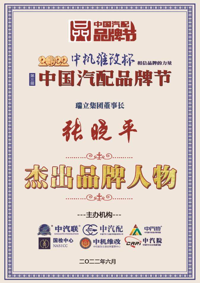 當(dāng)選2022中國汽配行業(yè)杰出品牌人物
