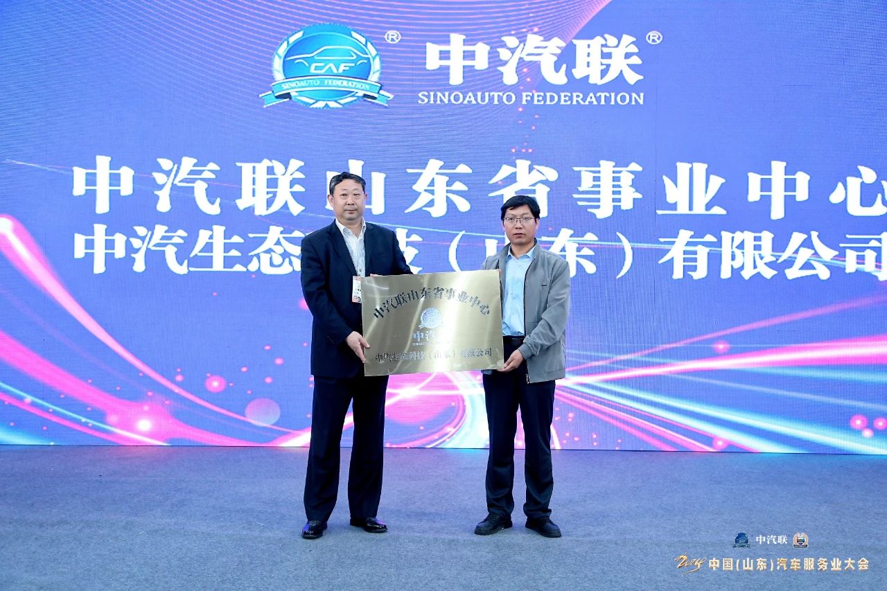 中汽聯(lián)集團(tuán)董事長(zhǎng)、全國(guó)機(jī)動(dòng)車(chē)數(shù)字化專委會(huì)執(zhí)行會(huì)長(zhǎng)喬永鋒向劉昌勇頒授山東省事業(yè)中心、中汽生態(tài)科技(山東)有限公司銅牌,中汽聯(lián)山東省事業(yè)中心正式揚(yáng)帆起航。