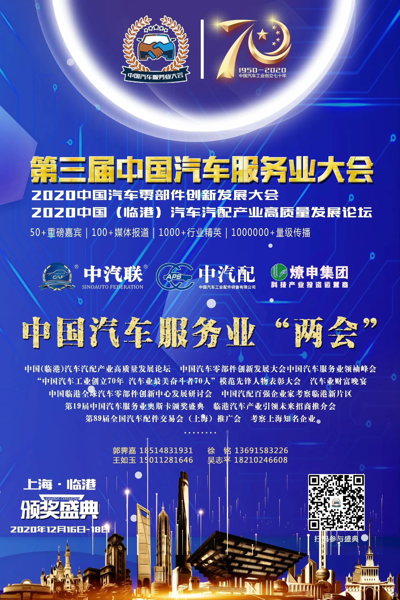 2020年12月16-18日,2020第三屆中國(guó)汽車服務(wù)業(yè)大會(huì)暨“中國(guó)汽車工業(yè)創(chuàng)立70年 汽車業(yè)最美奮斗者70人”模范先鋒人物表彰大會(huì)將在上海臨港新片區(qū)舉辦,更具國(guó)際市場(chǎng)影響力和競(jìng)爭(zhēng)力的特殊經(jīng)濟(jì)功能區(qū)中國(guó)(上海)自由貿(mào)易試驗(yàn)區(qū)臨港新片區(qū)歡迎您的到來!
