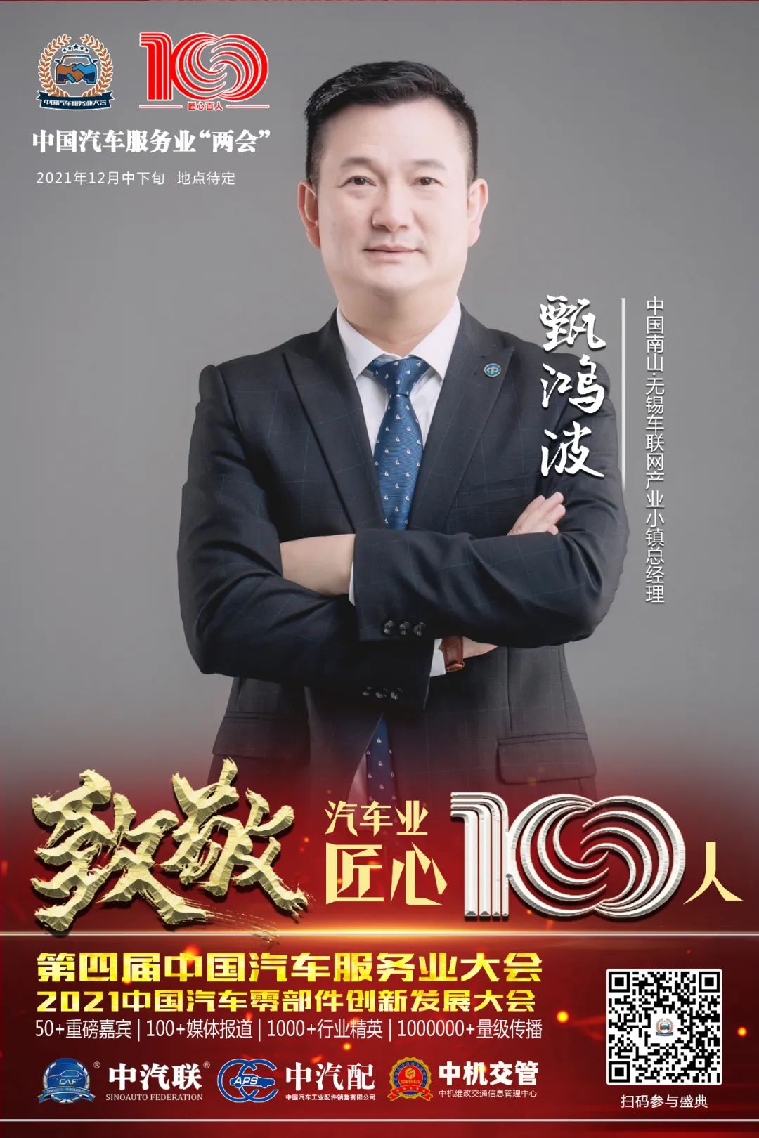 據(jù)第四屆中國汽車服務業(yè)大會組委會介紹,中汽聯(lián)副主席,中國南山·無錫車聯(lián)網(wǎng)小鎮(zhèn)總經(jīng)理甄鴻波入選“百年百人”中國汽車業(yè)匠心100人。