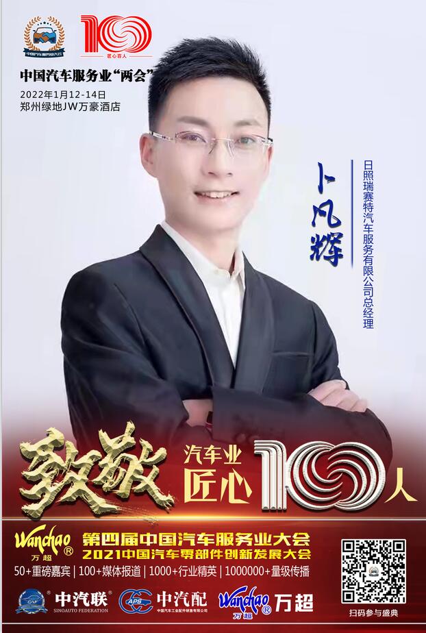 據(jù)第四屆中國(guó)汽車服務(wù)業(yè)大會(huì)組委會(huì)介紹,日照瑞賽特汽車服務(wù)有限公司總經(jīng)理卜凡輝入選“百年百人”中國(guó)汽車業(yè)匠心100人。