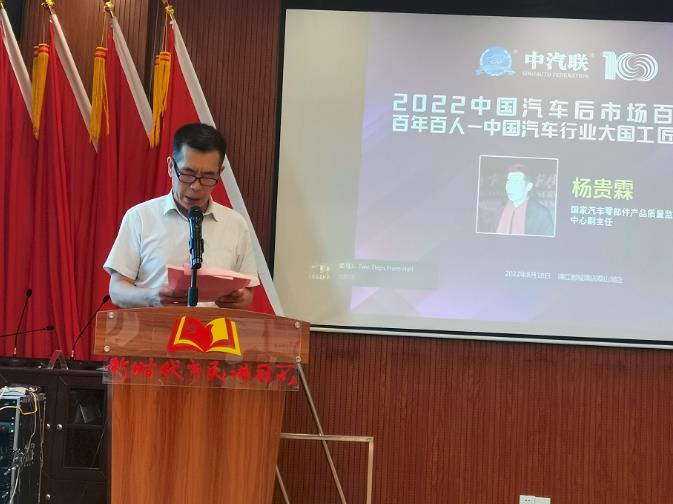 今天,我們在中汽聯(lián)的召集下,在貴陽舉辦“2022中國汽車后市場百人峰會暨百年百人-中國汽車行業(yè)大國工匠表彰大會”,這是一次遲到的會議,本應該1月份召開的;同時這也是一次繼往開來、面向未來的大會,也是一次在疫情新常態(tài)下企業(yè)如何發(fā)展的研討會。我想在中汽聯(lián)這個平臺上,我們可以總結(jié)經(jīng)驗,學到全國優(yōu)秀企業(yè)的先進理念,明確未來的發(fā)展方向。在此,我謹代表國家汽車零部件產(chǎn)品質(zhì)量監(jiān)督檢驗中心、中汽環(huán)球汽配用品檢測認證中心及中汽聯(lián)向大會的成功召開表示熱烈的祝賀,向各位來賓的到來表示衷心的感謝!